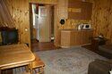 Уютный деревянный двухкомнатный дом с кухней и спальней.