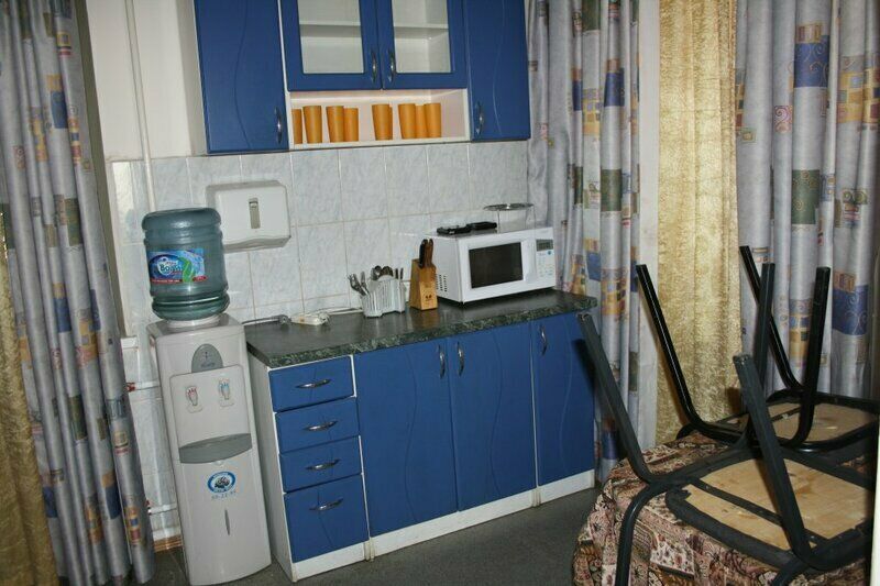 В холле большой раскладной диван, телевизор, музыкальный центр с караоке. Кухонный гарнитур, холодильник, микроволновая печь, чайник, кулер с водой, посуда. Регулируемые батареи, душевая кабина, теплый сан.узел.