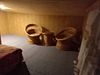 Второй этаж мансардный — крутая лестница, низкий потолок, спальня.
