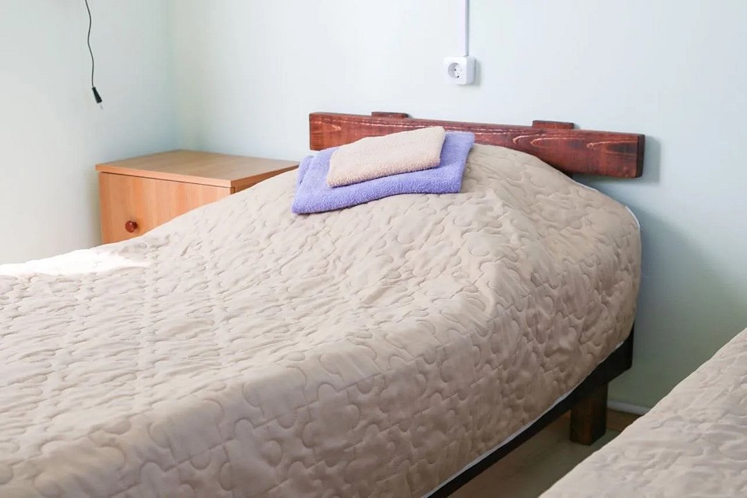9 кв.м., 2 односпальные кровать, стол, с/у с душем. Общая кухня с холодильником, микроволновой печью.