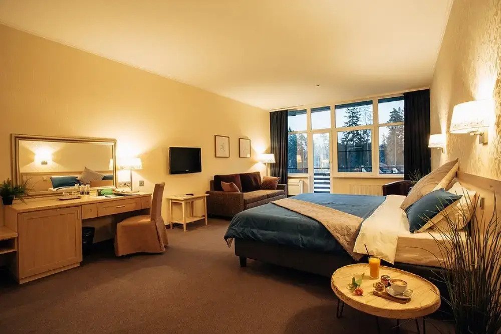 Для тех, кто привык к регулярным тренировкам, в отеле работает фитнес-центр. После занятий спортом гости могут посетить сауну или крытый бассейн, расположенный на территории. Также в распоряжении спа-центр.