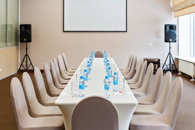 Просторный зал «Чил-Аут» расположен на втором этаже отеля. Правильная форма зала и нейтральные оттенки, использованные в его интерьере, позволяют проводить в нем мероприятия различного формата.