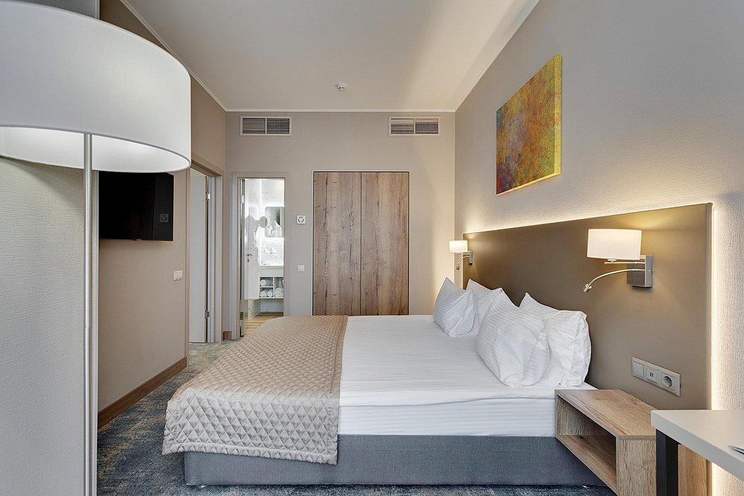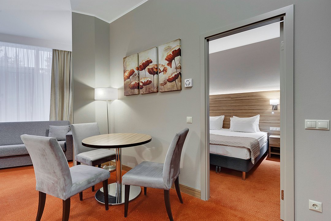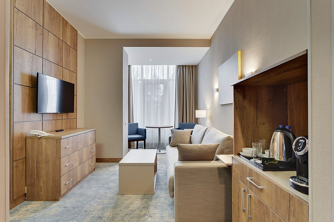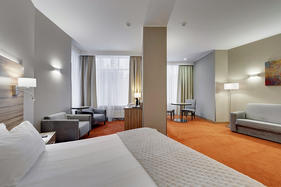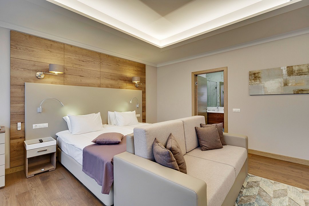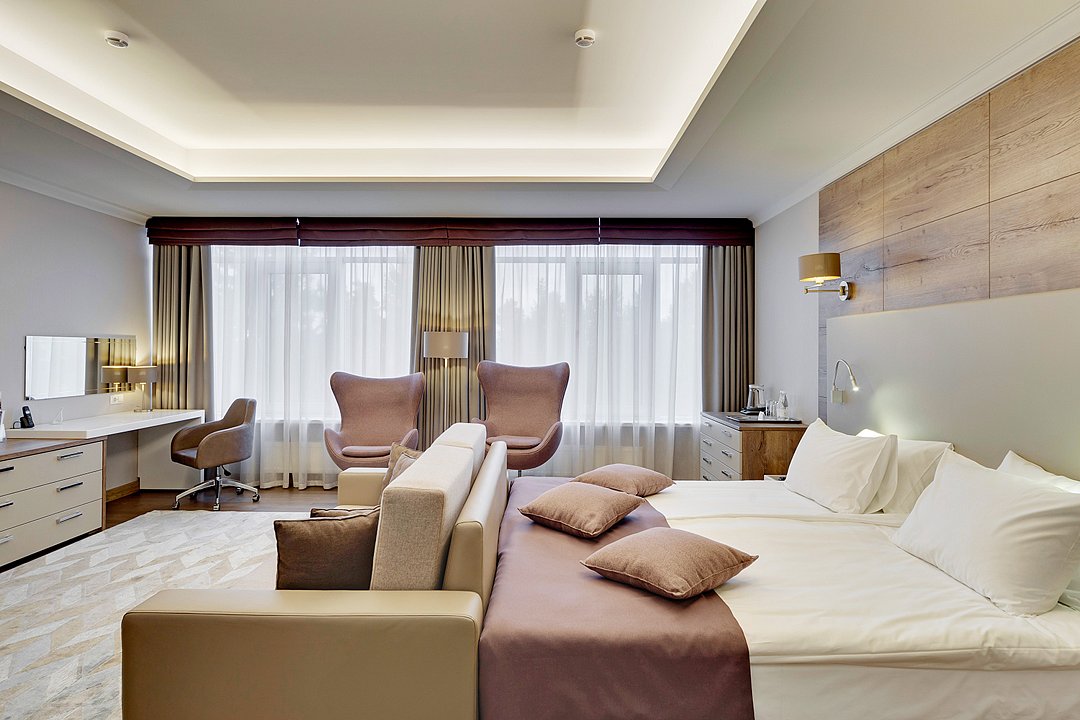 Просторные и стильные номера категории «Джуниор Сюит» идеально подходят для длительного проживания и для семейного отдыха.
