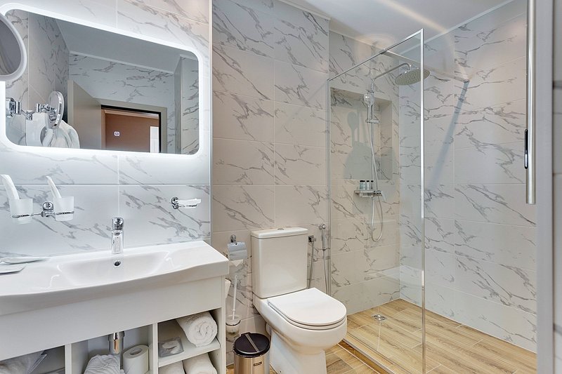 Нет стиральной машинки в двухкомнатном номере (два сан узла, место есть), нет прачечной (отдых с маленькими детьми!), много туристов, как и мы, приезжают на машине - нет тележки для чемоданов! Отдых начинается с разминки) В ванной слив в пол - нужен маленький бортик, вода вытекает за пределы душа!