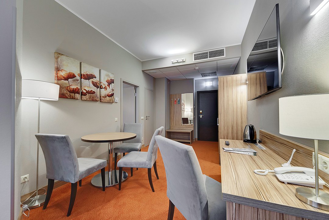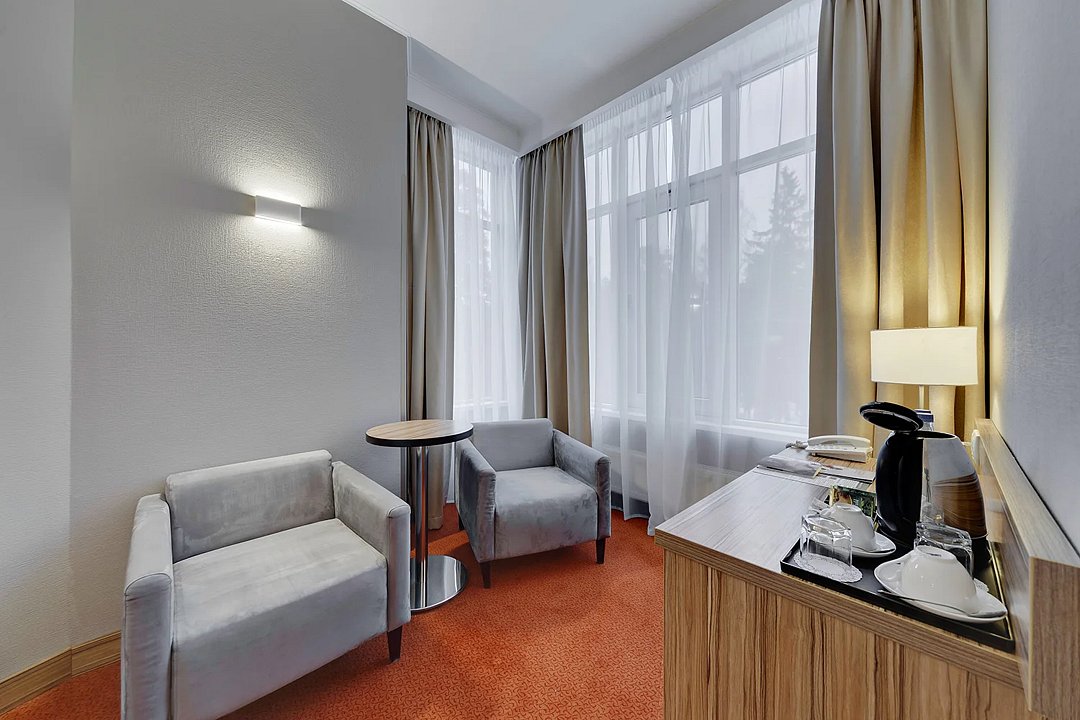 Просторные номера категории «Джуниор Сюит Оранж» расположены на 2, 4 и 5 этажах и выходят окнами в сторону Финского залива.