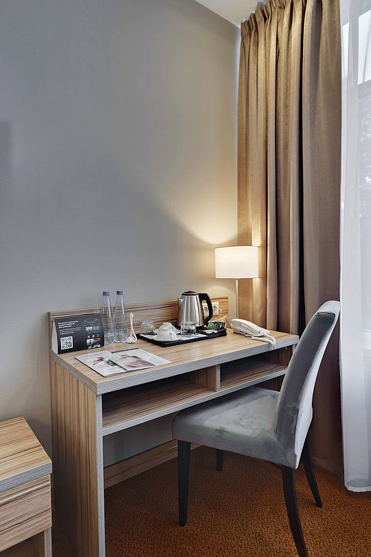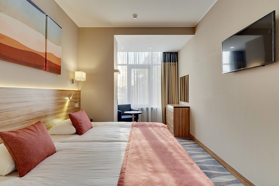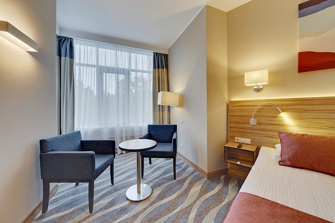 Номера «Стандарт» расположены с 1 по 4 этаж отеля, часть номеров выходит окнами в сторону Финского залива, часть – на живописный парк. В номере могут комфортно разместиться 1-2 гостя. Номера оснащены всем необходимым для комфортного отдыха.