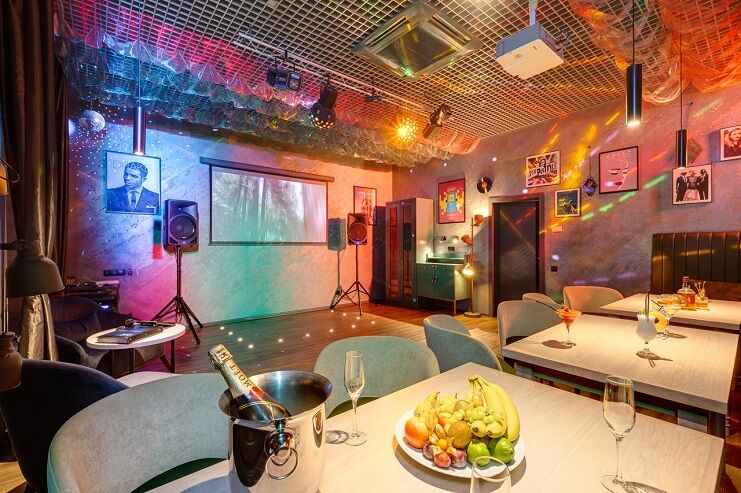 - Просторный зал «Чил-Аут» на втором этаже отеля вмещает до 60 гостей при банкетной рассадке. Площадь зала составляет 150 кв.м., поэтому он прекрасно подходит для торжественных банкетов для 30-60 гостей.