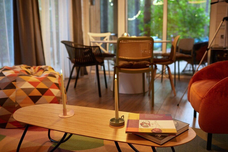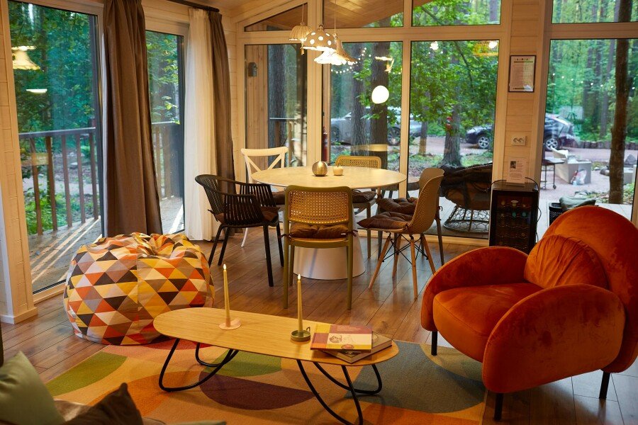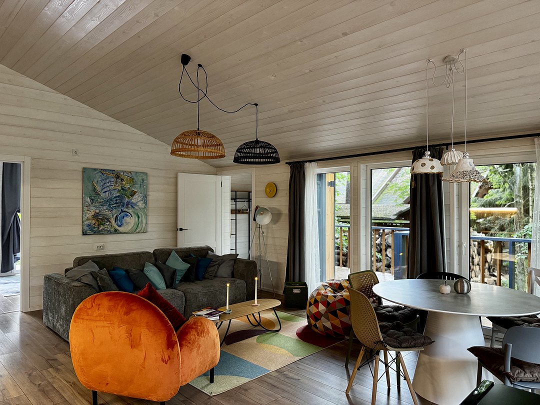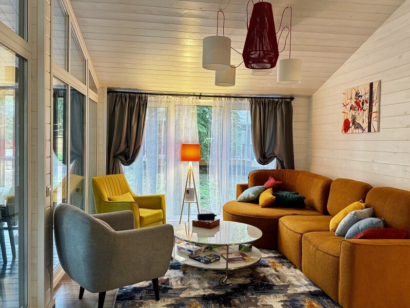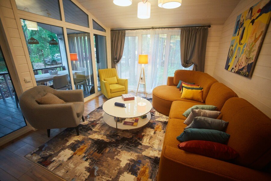 - большая гостиная с bluеtооth колонкой, уютнейшим диваном, настольными играми, обеденным столом.