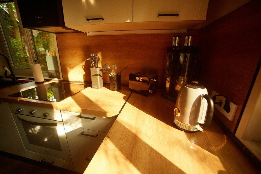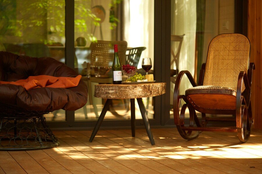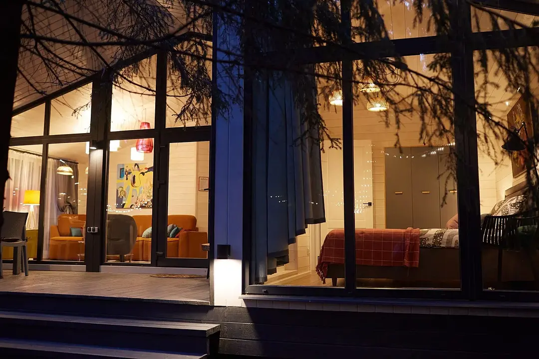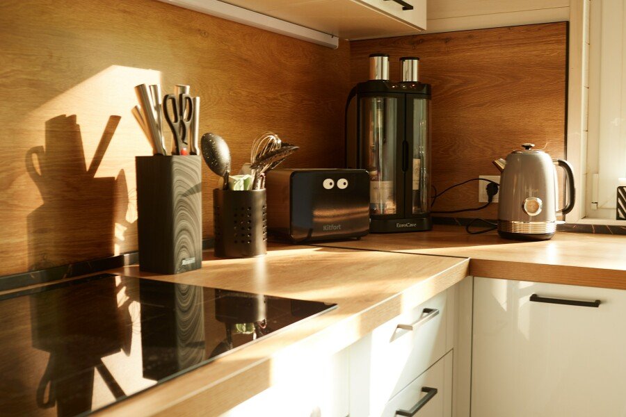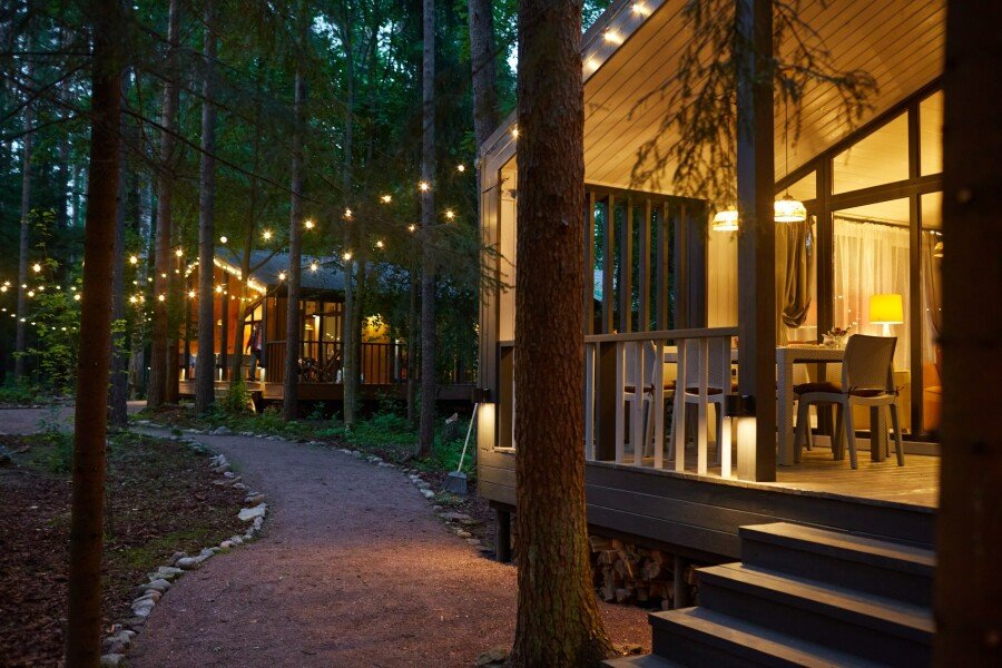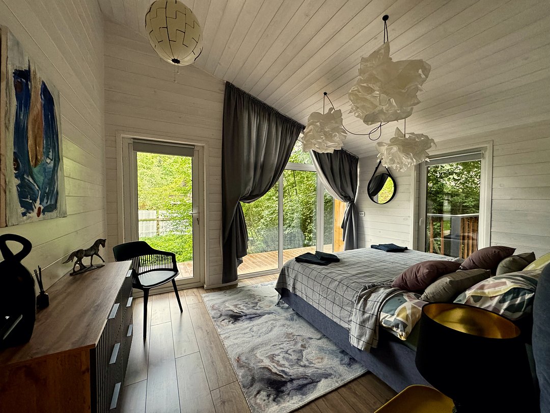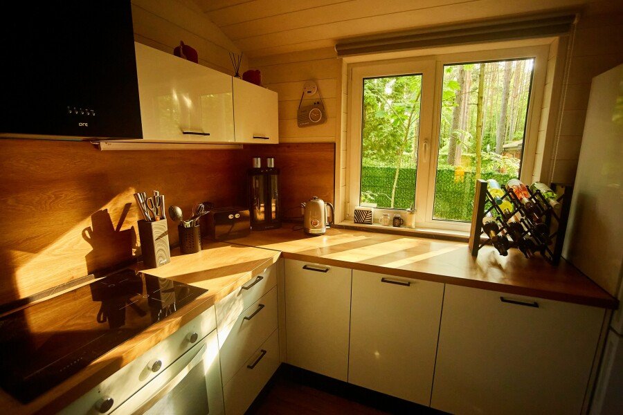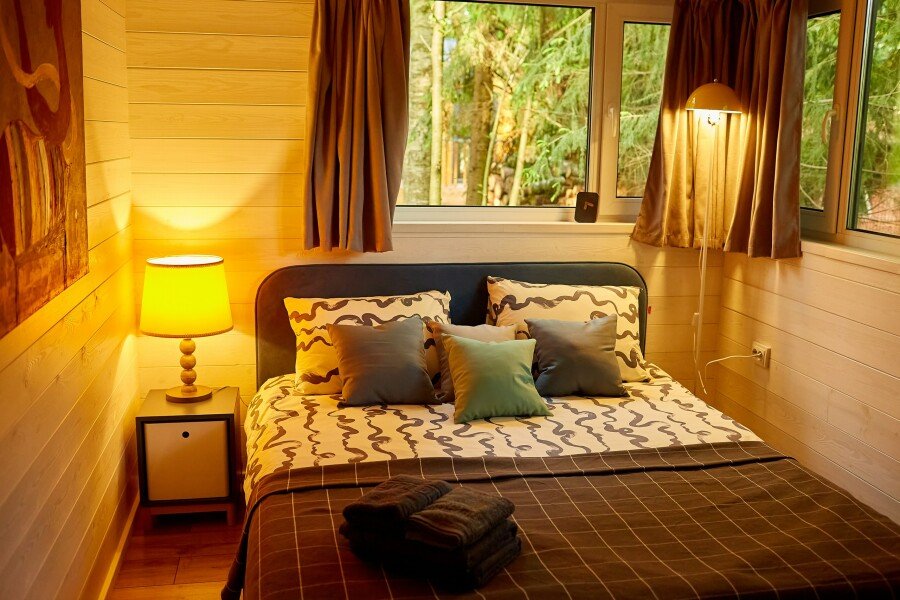 Свeтлые, уютные дома с большой террасой и панорамными окнами оборудованы всем необходимым для вашего комфортного отдыха. В каждом доме имеется кухня с винным баром, полностью оснащенная бытовой техникой и набором посуды, большая гостиная с bluеtооth колонкой и диваном, современная, просторная ванная с душевой и стиральной машиной, теплые полы во всех комнатах.