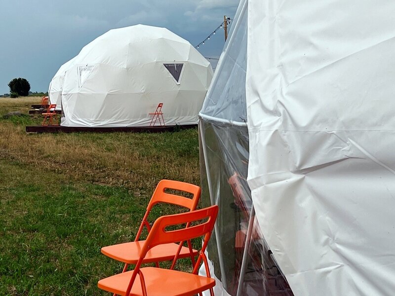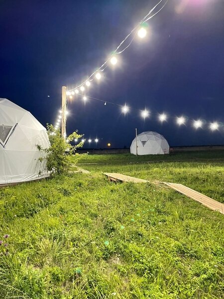 В глэмпинге имеется зона барбекю, где можно разводить костры. Каждый купол оборудован мангальной зоной.