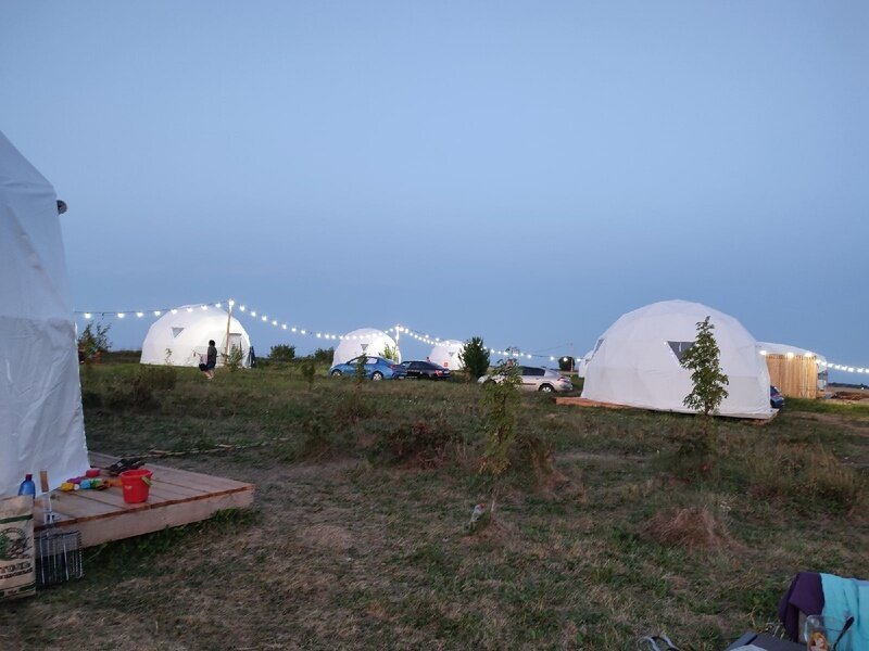 Для жаркой погоды есть вентилятор, для прохладной погоды обогреватель. Каждый Купол оборудован мангальной зоной.