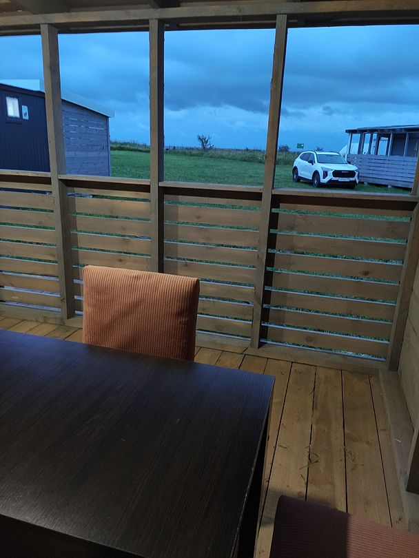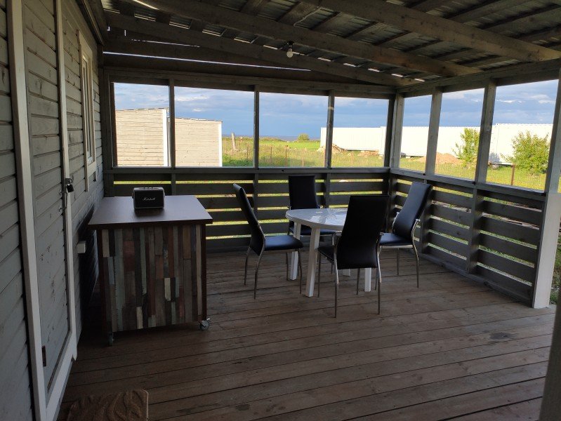 Домик с террасой расположен в 90 метрах от озера Ильмень с выходом на бывший екатерининский причал, теперь называют екатерининская коса. К концу сентября протяжённость косы 440 метров. В августе месяце на косу прилетают полакомиться краснокнижные серые цапли и просто красивые белые цапли!