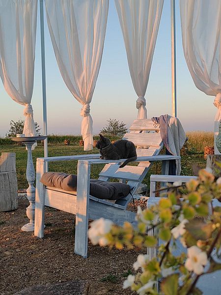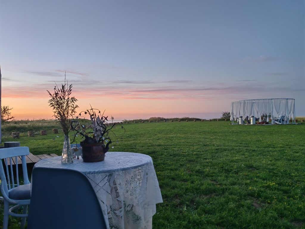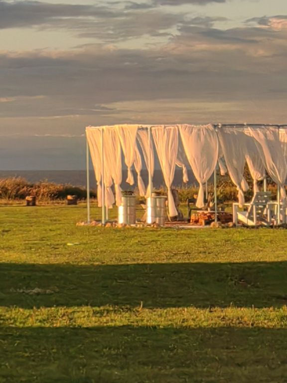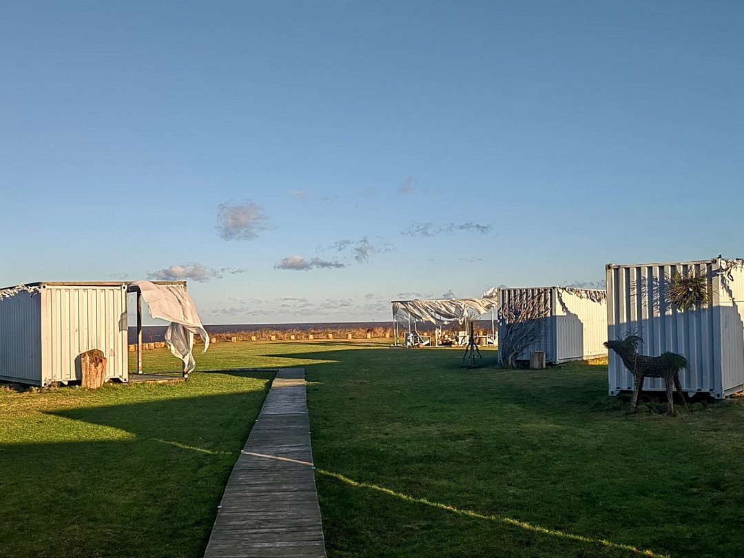 Также вы можете приехать со своей палаткой или автодомом и расположиться в кемпинге. Предоставляется с доступ к электричеству, воде и туалету, а также есть возможность воспользоваться кухонно-обеденной зоной с холодильником, чайником, посудой, приборами и микроволновкой.