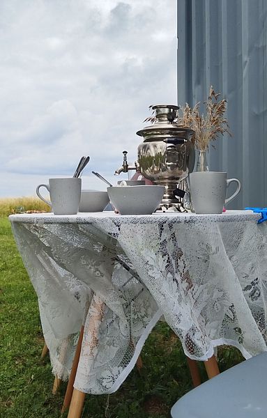 Проживающие в палатках могут воспользоваться кухонным уголком на территории. В вашем распоряжении холодильник, чайник, микроволновка, посуда.