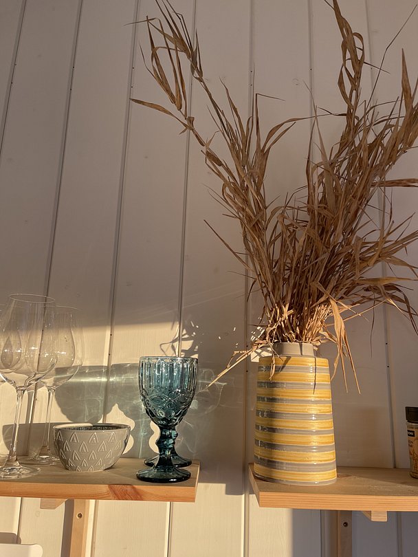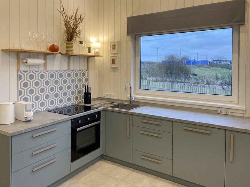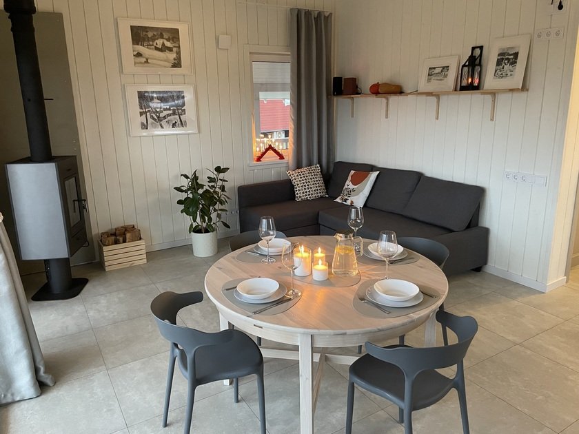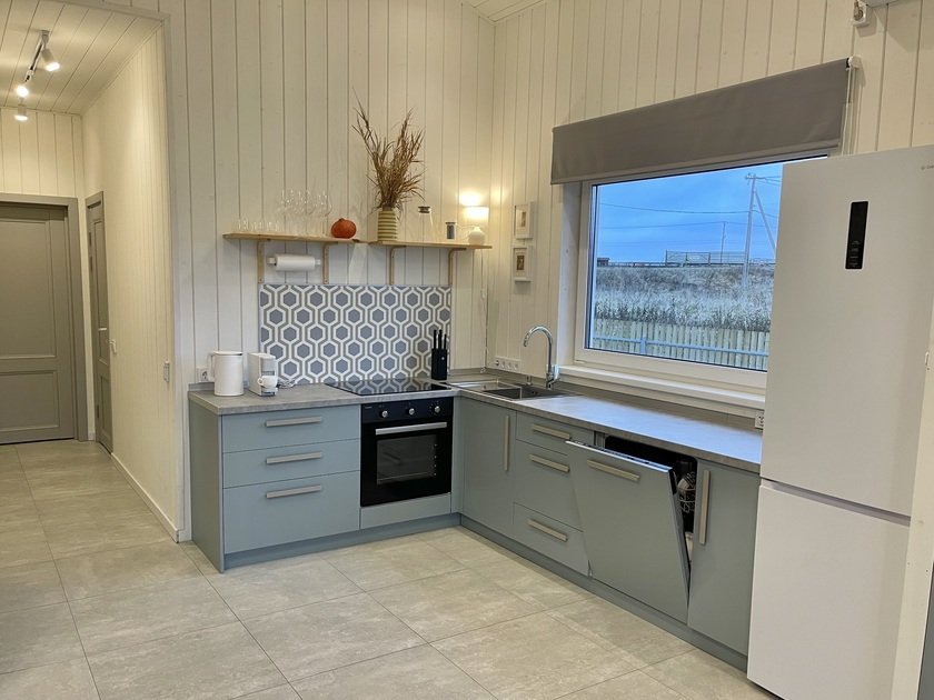 Внутри дома имеется вся необходимая бытовая техника — от посудомоечной машины до капсульной кофемашины, что позволяет гостям наслаждаться комфортным отдыхом без дополнительных хлопот. Кроме того, предоставляются свежие полотенца, постельное белье и средства личной гигиены. В непосредственной близости от дома расположены зона для костра и барбекю, а также многочисленные парковочные места. Для спортивного инвентаря и детских колясок предусмотрено специальное хранилище.