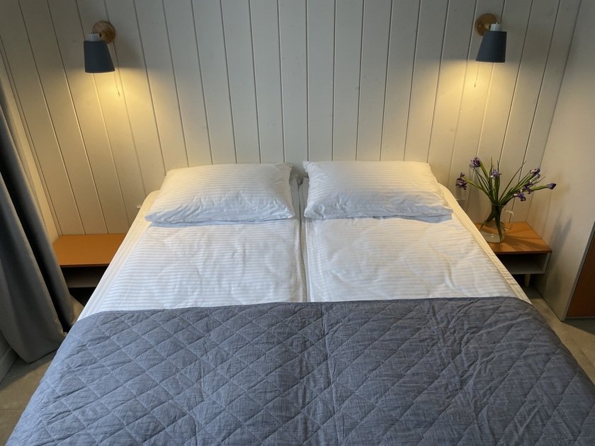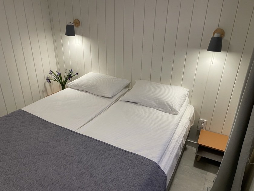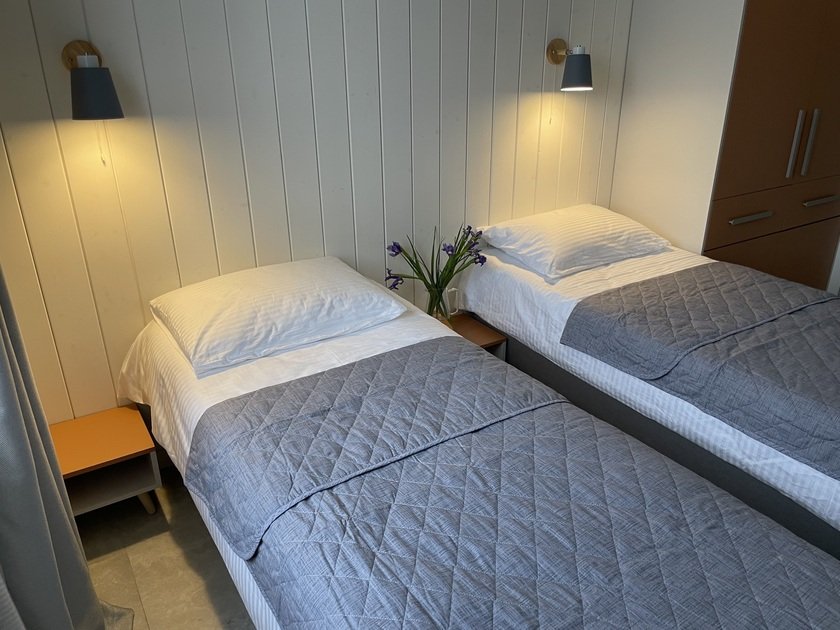 В доме есть все для того, чтобы расслабиться и получить удовольствие от загородной жизни. Дом идеально подходит для проживания четырех человек, возможно размещение шести человек. В доме есть две комфортные спальни, одна из них оснащена персональным санузлом. Кровати в спальне могут быть как двуспальными, так и разделяться на односпальные. Еще два человека могут разместиться на диване в гостиной.