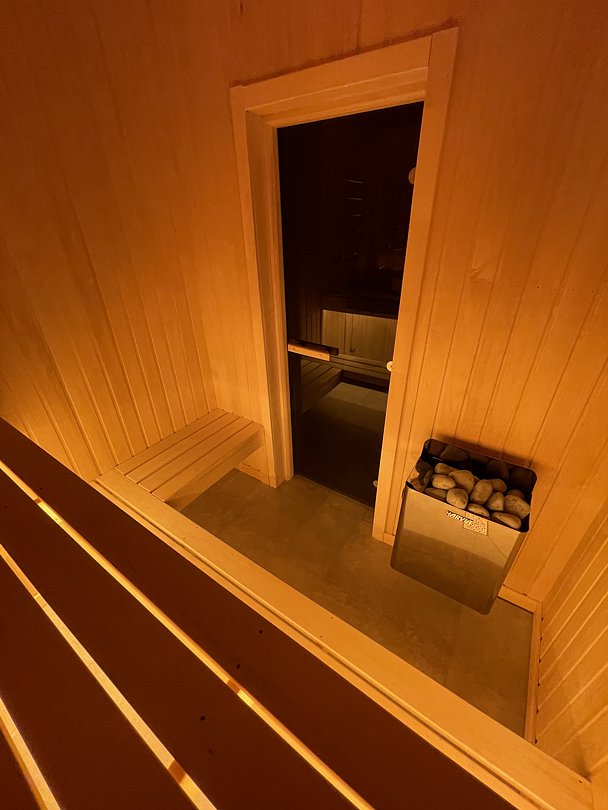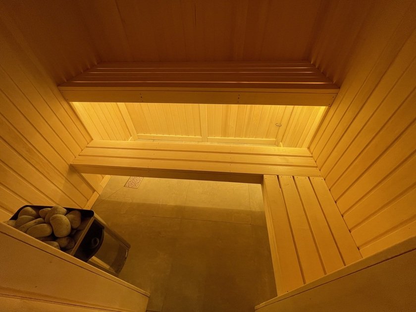 В каждом доме есть личная сауна — идеальное место для полного расслабления, не покидая жилья. Собственная парная обеспечивает уединенный и комфортный отдых в любое удобное время.