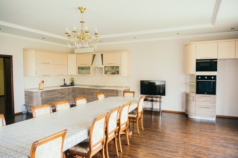 Просторный, мебелированный двухэтажный VIP-дом. Это идеальный выбор для компании и семейного отдыха: 3 спальни с отдельными сан. узлами и выходом на террасу, просторный зал с мягкой мебелью и LED-телевизором, кухня, полностью оборудованная техникой, посудой и трапезная на 12 персон.