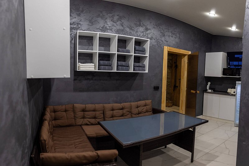 - комната отдыха (столик, скамейки), душевая, парилка;