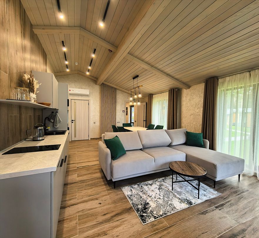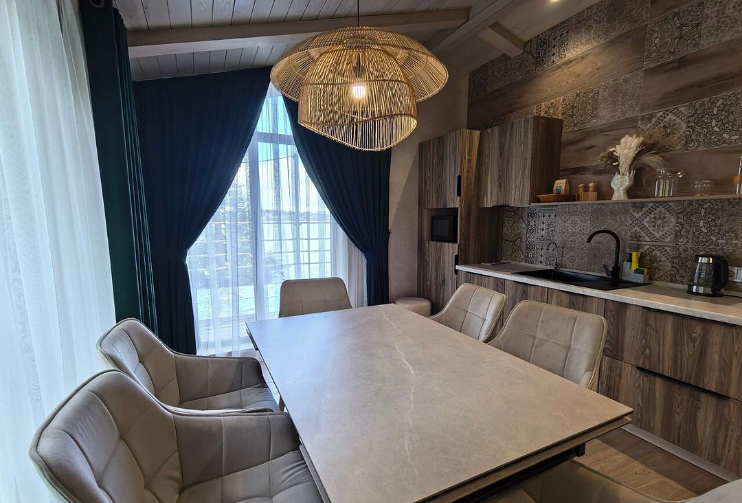 - просторная оборудованная кухня-гостиная с обеденным столом на 6 персон;