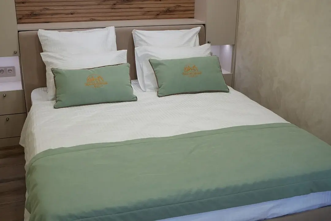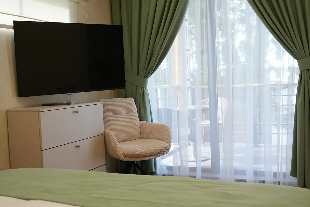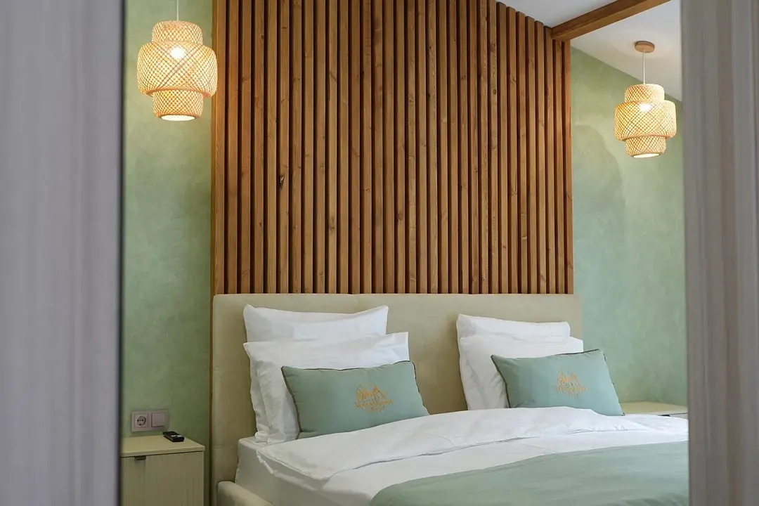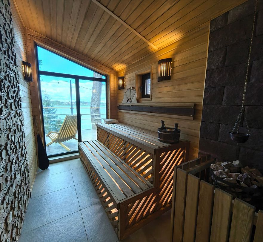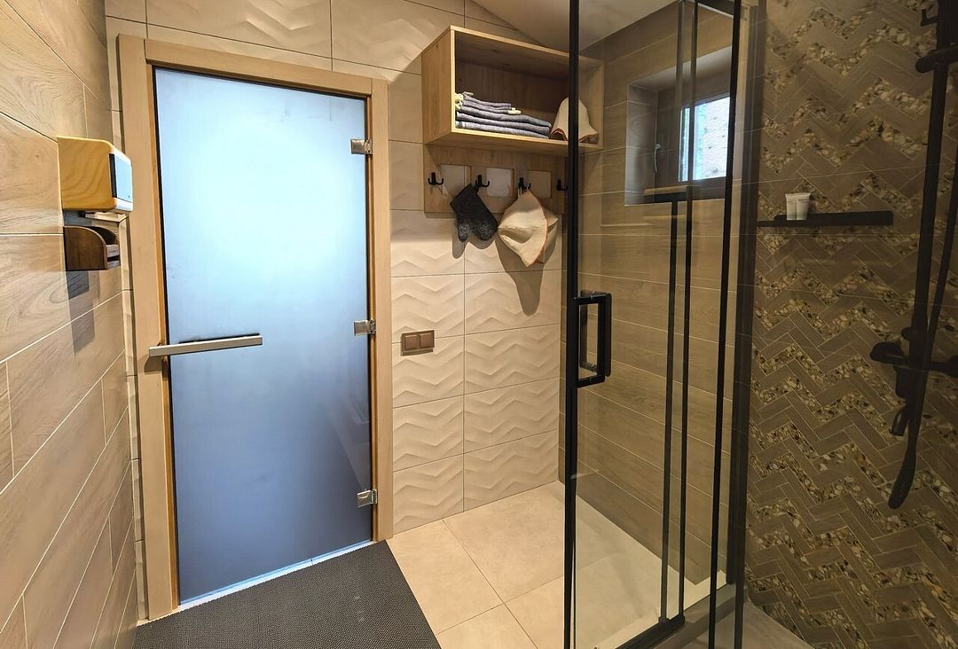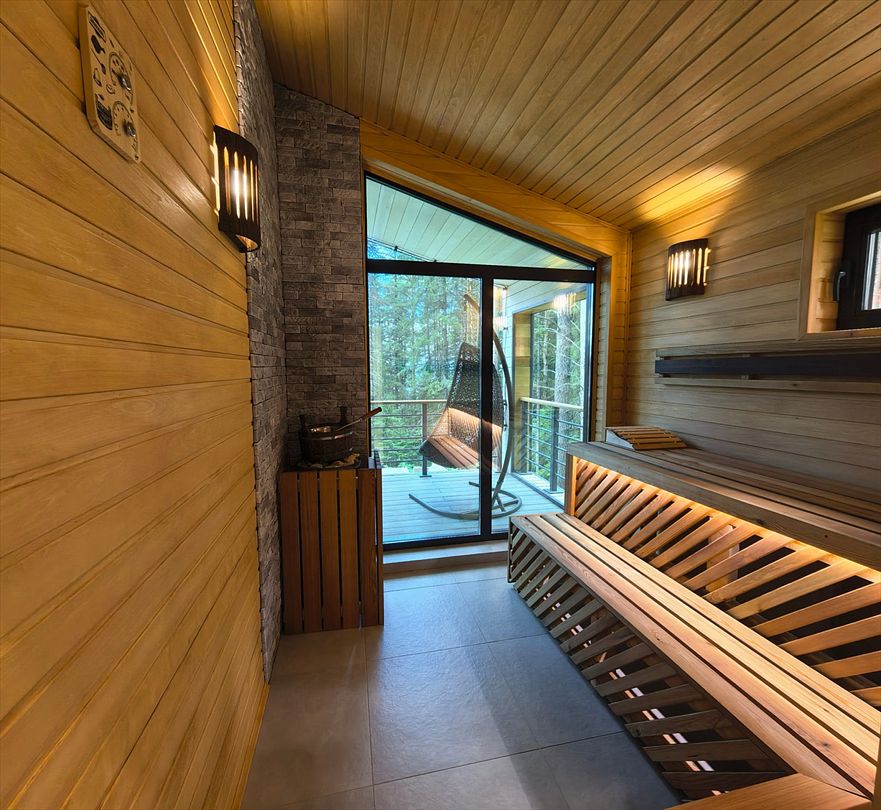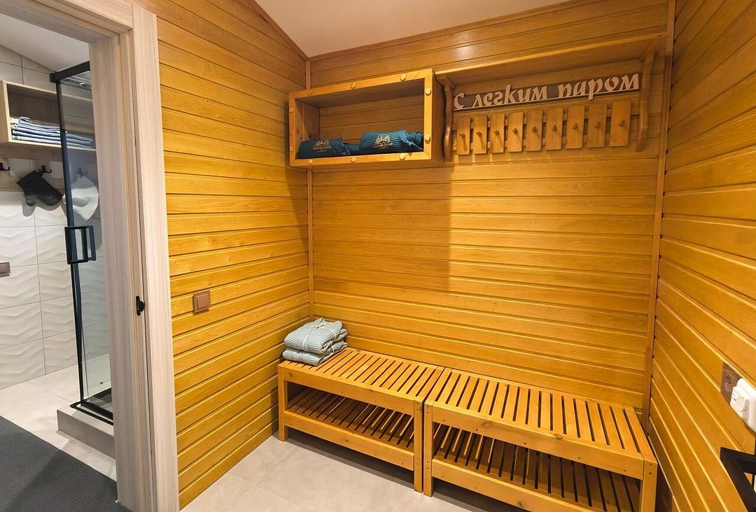 Просторный и уютный номер площадью 70 кв. м с собственной сауной, идеально подходит для отдыха в кругу семьи или друзей.