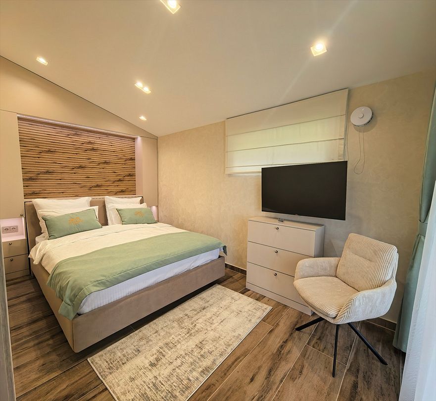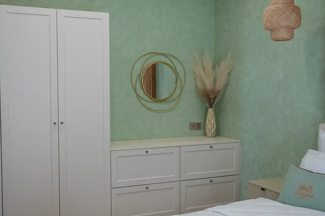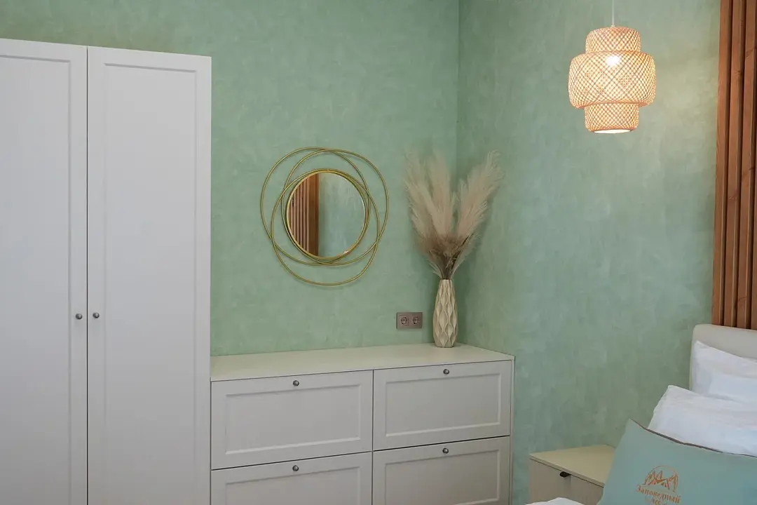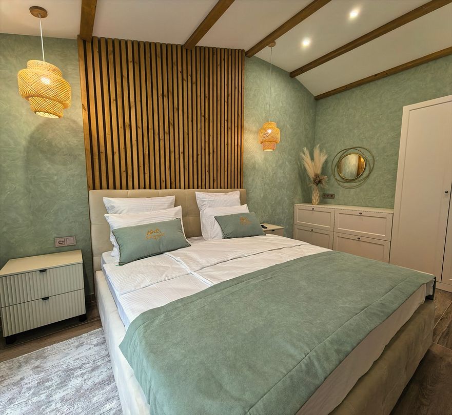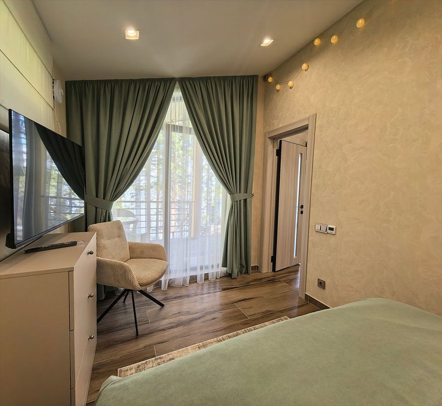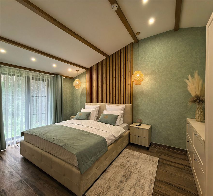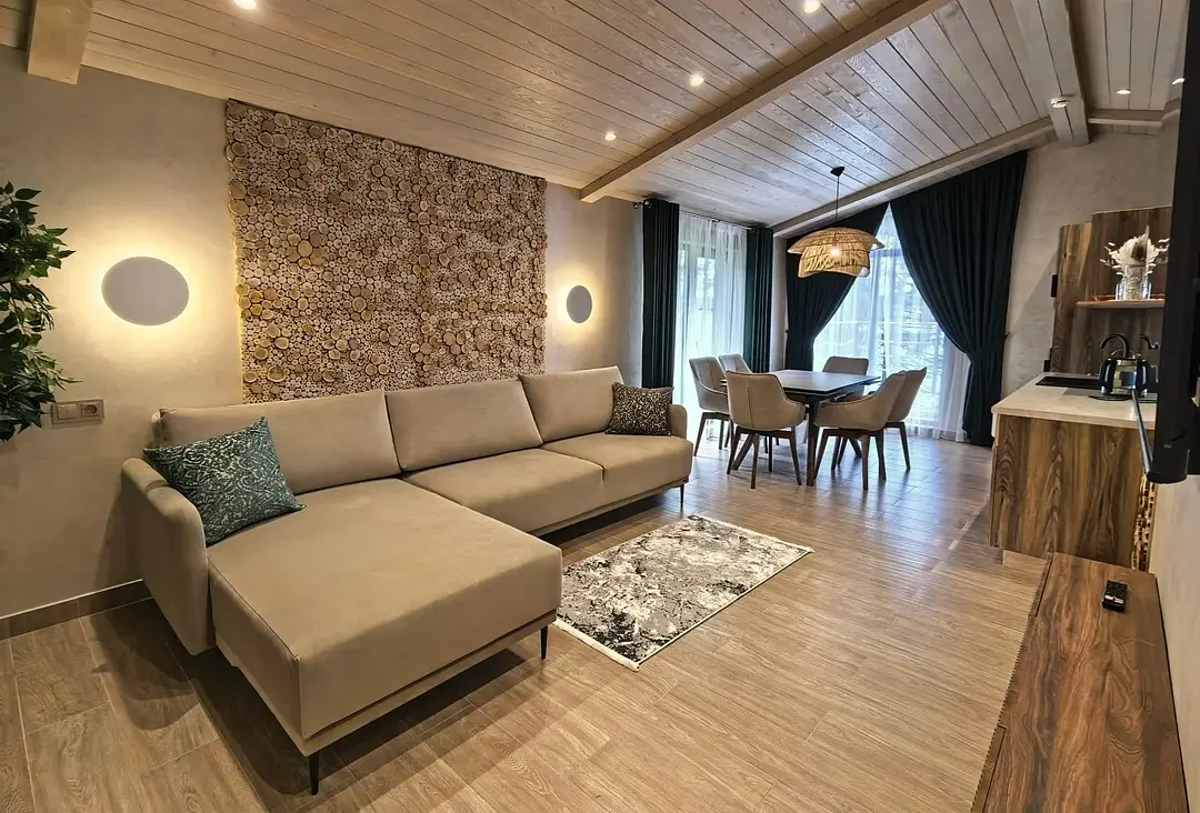 Просторный и уютный номер площадью 70 кв. м с собственной сауной, идеально подходит для отдыха в кругу семьи или друзей.