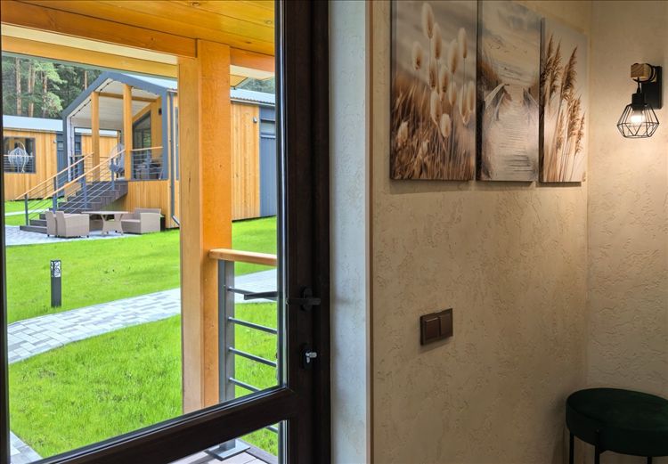 - большие панорамные окна с видом на сосновый лес и водохранилище;