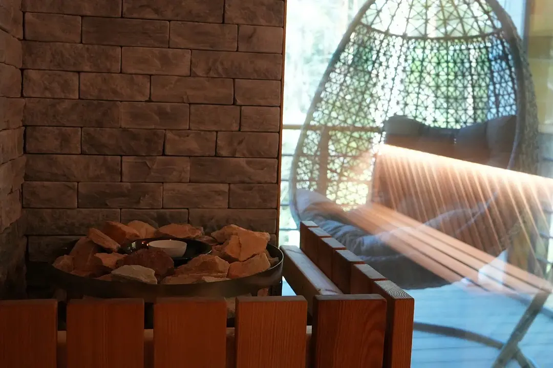 Окунитесь в атмосферу гармонии в нашей уличной купели с подогревом на дровах. Вместимость чана до 6 человек.