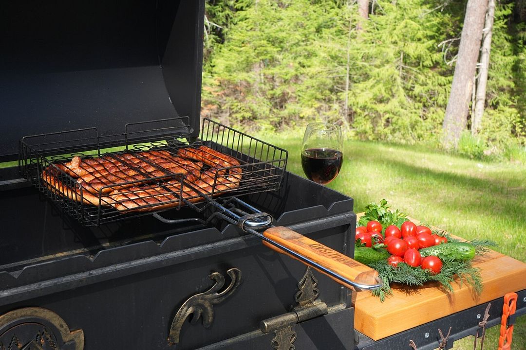 Удобная мангальная зона возле каждого домика. В ней установлен мангал с барбекю-принадлежностями и печь для казана.