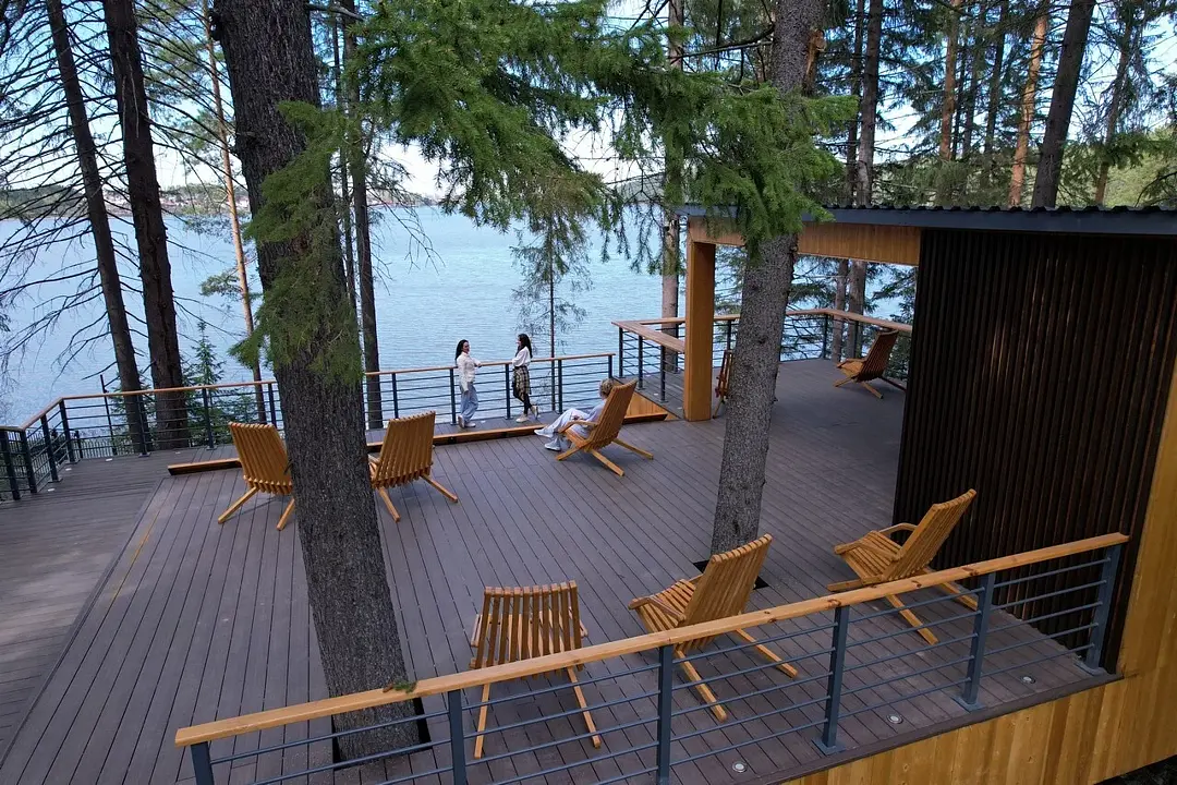 В кафе вас ждёт уютная атмосфера, вкуснейшие блюда и горячий кофе с потрясающим видом на лес и водохранилище. Идеальное место, чтобы начать утро, собраться с друзьями за обедом или провести романтический вечер.