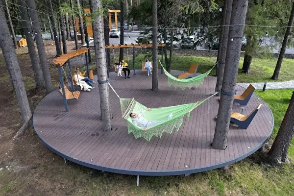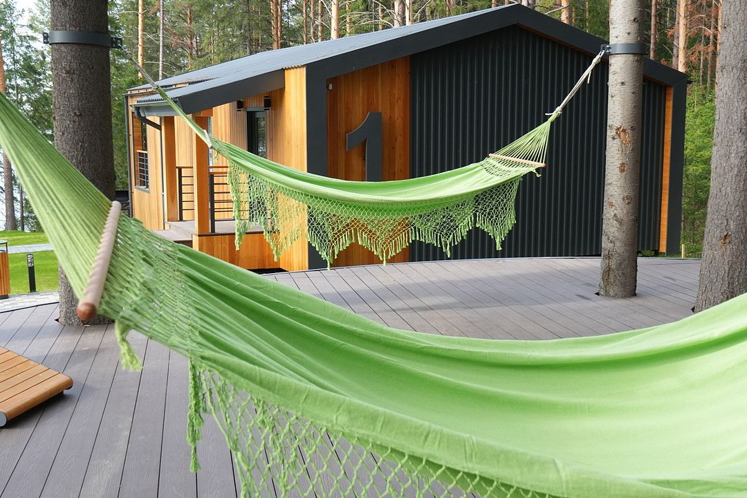 Для вашего комфорта и лучшего времяпрепровождения подготовлена удобная площадка с комфортными качелями, шезлонгами и уютными гамаками под открытым небом, где можно расслабиться.
