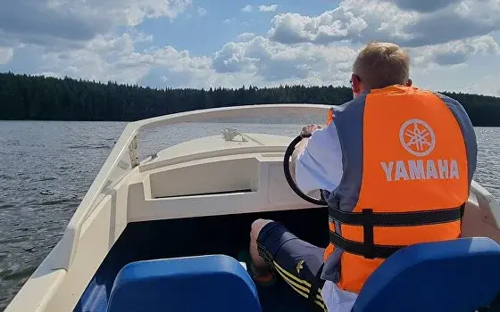 Аренда 4-местного катера без необходимости в правах — это удобно и доступно для отдыха на Ревдинском водохранилище в Заповедном лесу.