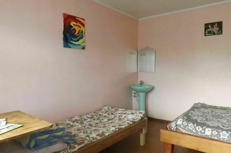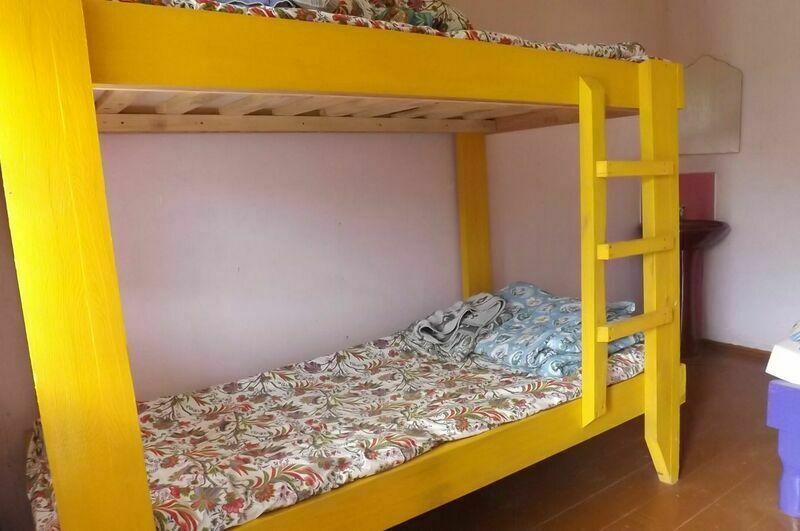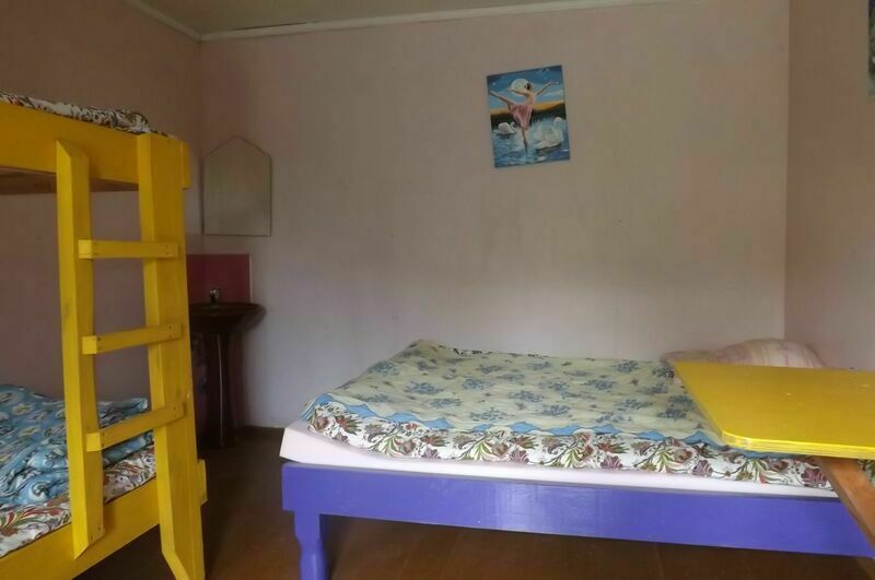 - 2 двухьярусные кровати + 1 односпальная, шкаф, зеркало, умывальник, стол, стулья, холодильник.