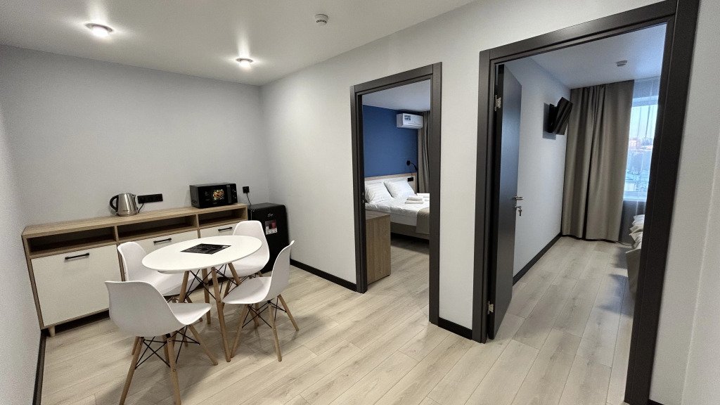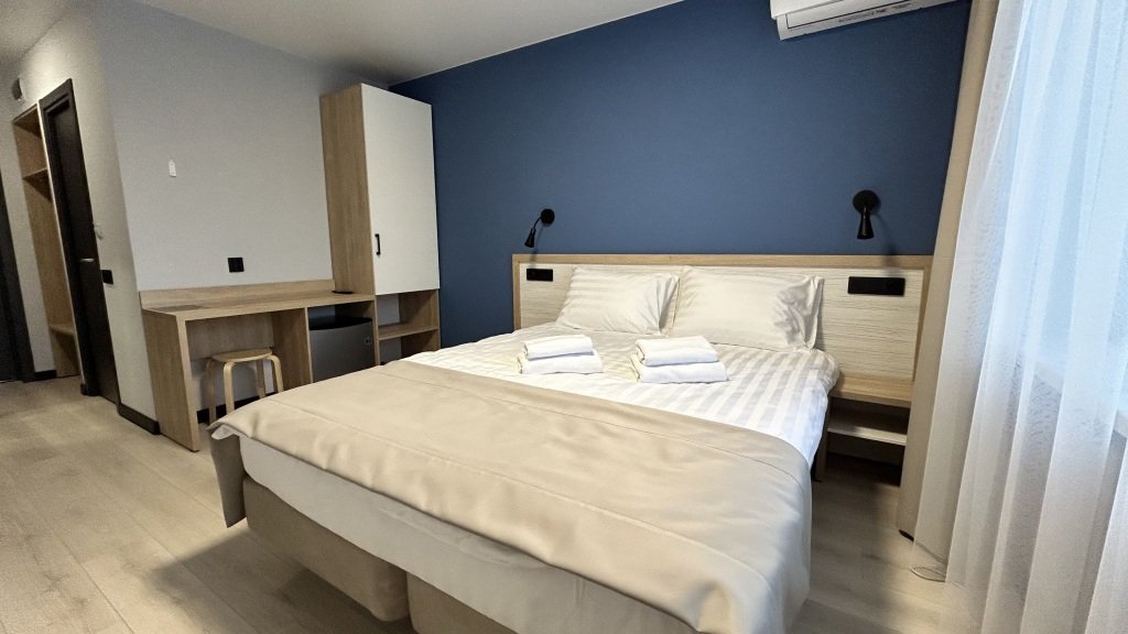 В номере вы найдёте телевизор. Оснащение зависит от выбранной категории номера.