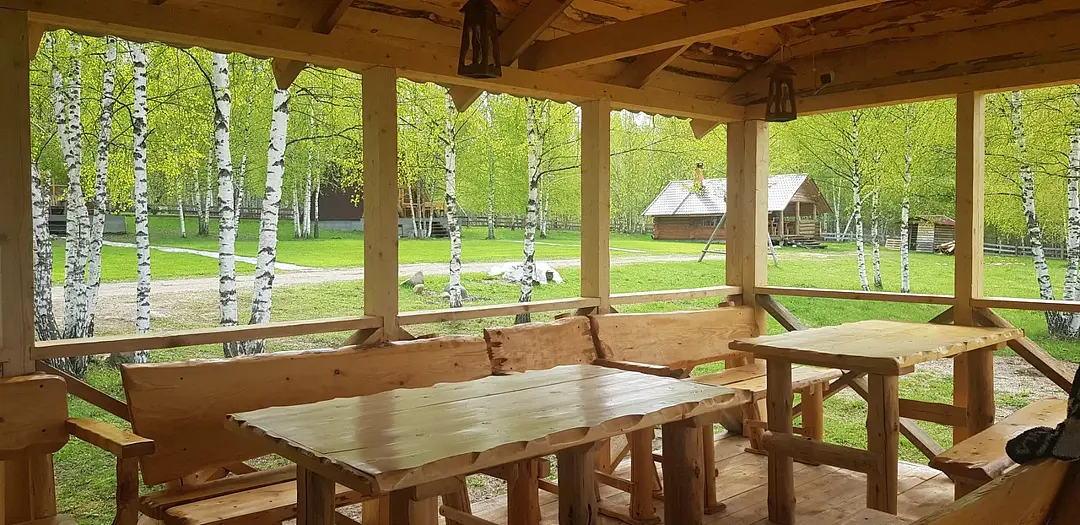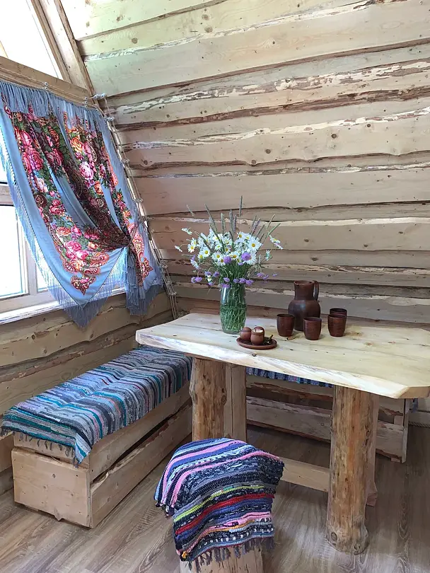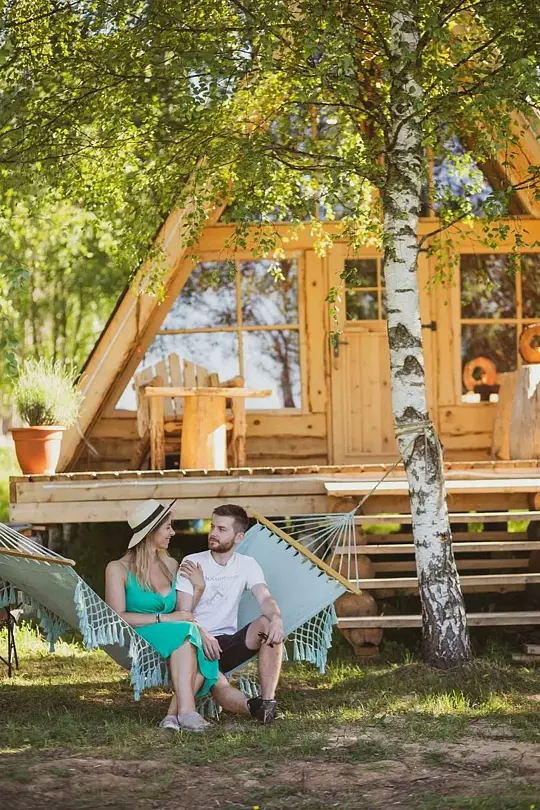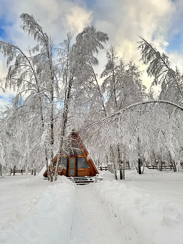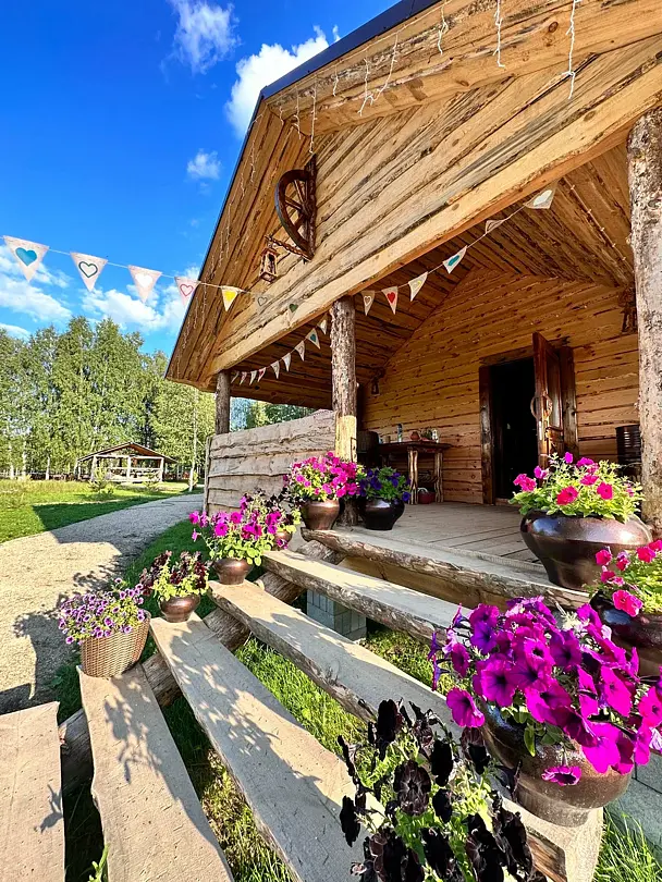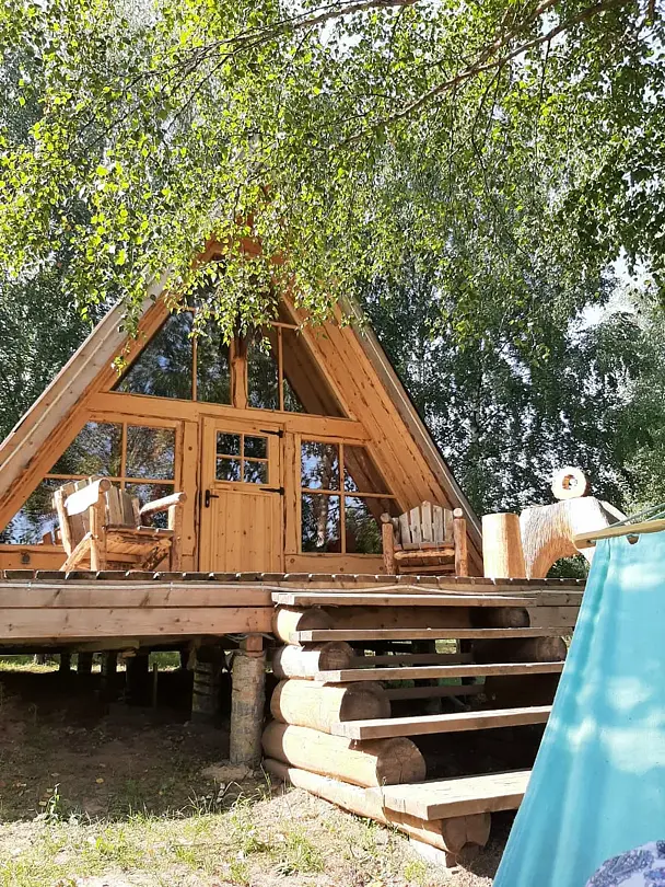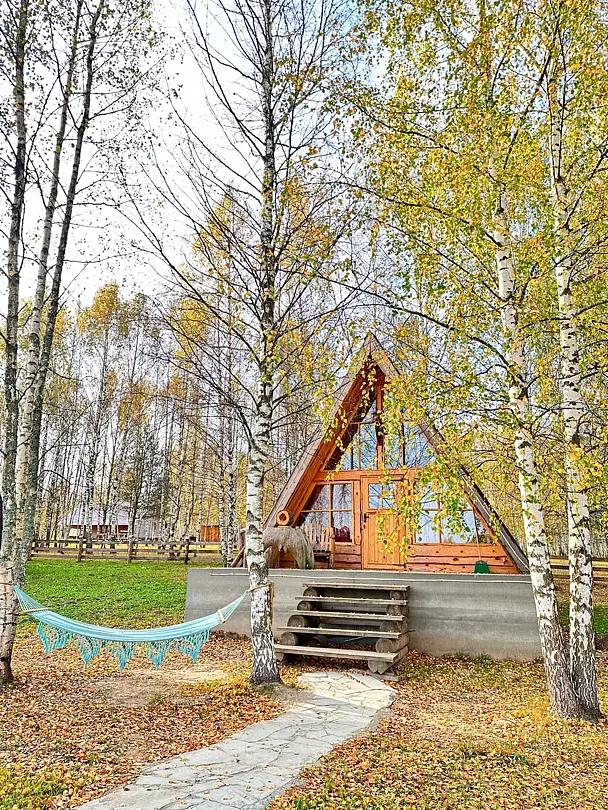 Каждый домик отличается уникальным интерьером, выполненным в русском стиле с использованием необработанного дерева. В вашем распоряжении будет все необходимое для комфортного отдыха: ванная комната, кухня, обеденная зона и терраса с мебелью. На свежем воздухе вас ждут мангальная зона, гамак и качели — все, чтобы вы могли наслаждаться общением с семьей и друзьями.