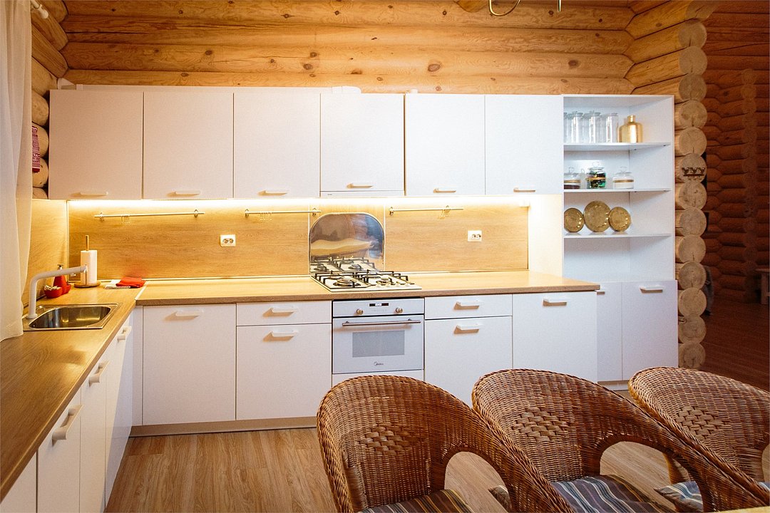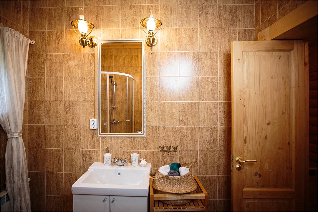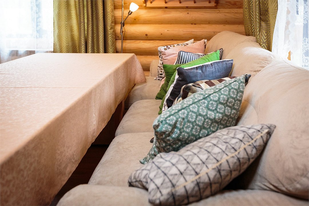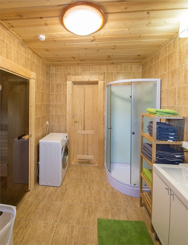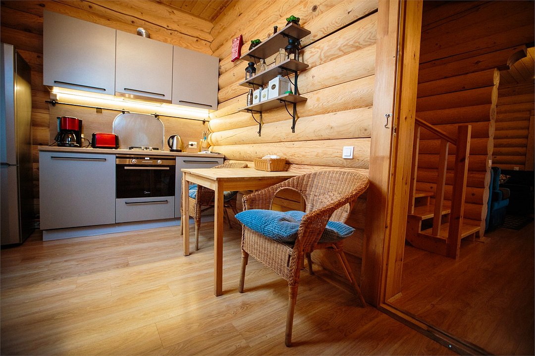 Наша гордость—просторный дом с двумя террасами и современной кухней-гостиной, где есть все необходимое. Но главное, почему гости любят именно этот коттедж — наличие сауны прямо на 1 этаже дома. Первый этаж распределен следующим образом: Кухня-гостиная; 1 спальня; Санузел; Сауна; 2 террасы; На втором этаже размещаются еще 3 спальни и санузел. Также на территории коттеджа обустроена бесплатная парковка на 4 автомобиля. Наши коттеджи прекрасно подойдут как для отдыха компанией с детьми, так и для праздника. Коттедж имеет все привычные современному человеку оснащение и, вместе с этим, находится в дикой природе. Так что вы сможет прекрасно отдохнуть и выспаться. Снять дом на 12 человек можно посуточно, на выходные или на целый месяц.Услуги и удобства