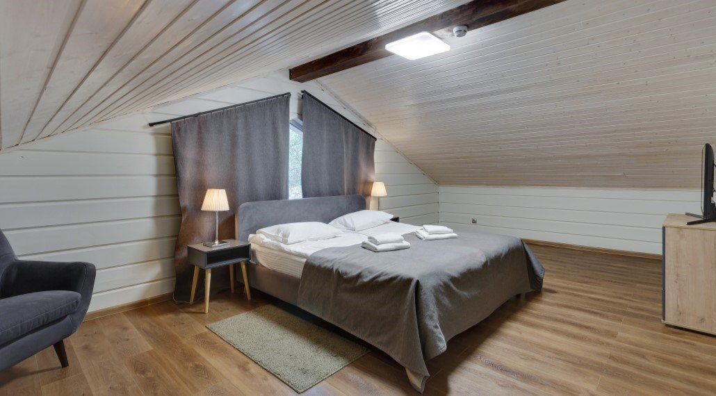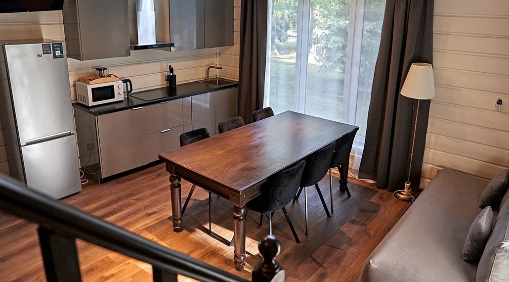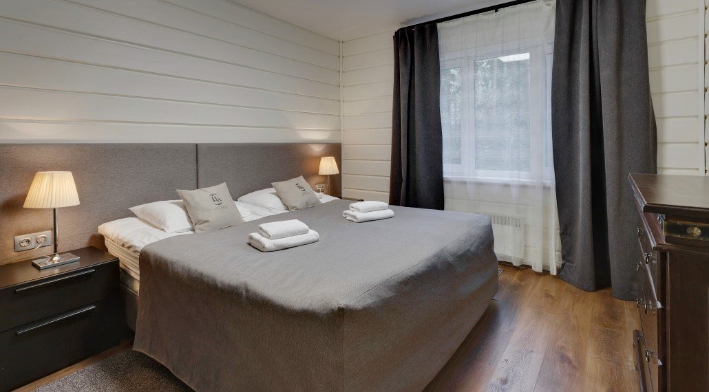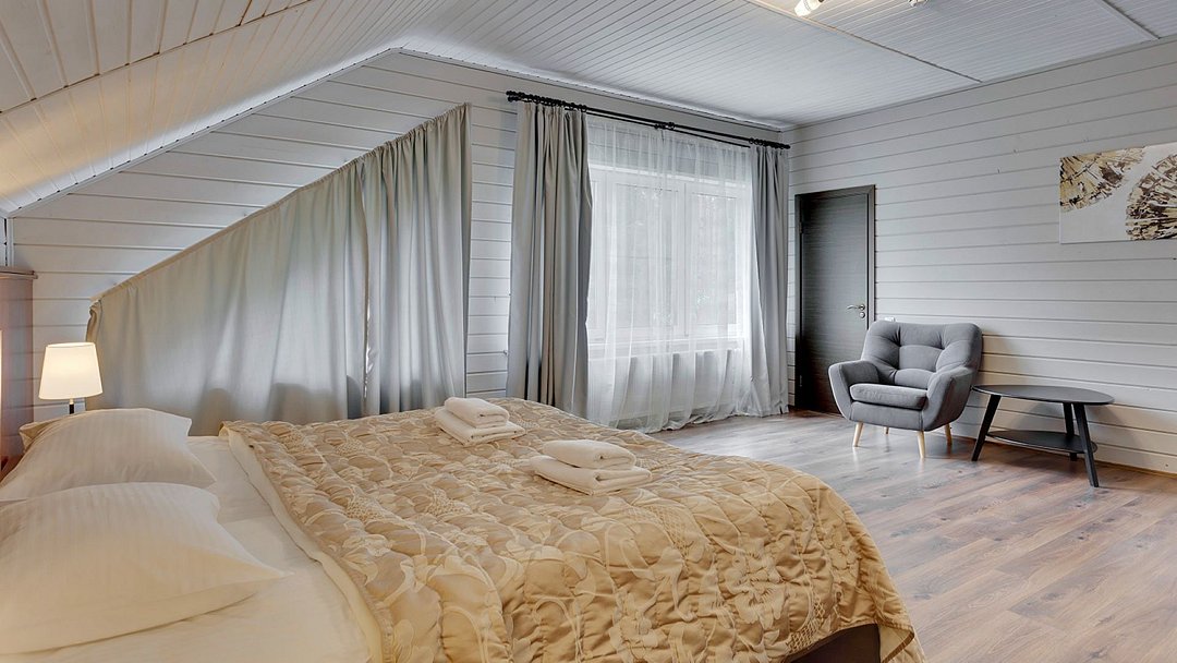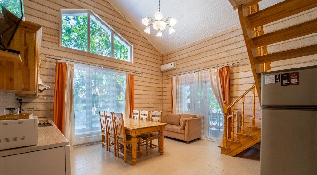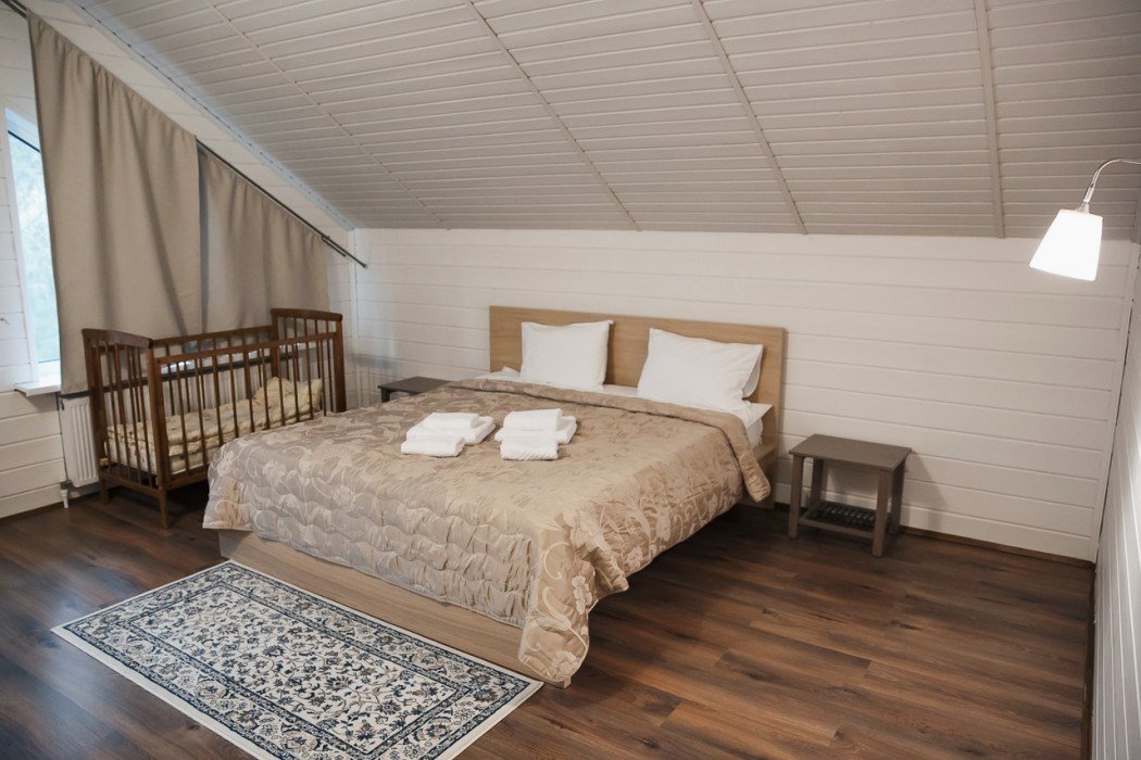 Отличный выбор для небольшой семьи с детьми. Боярские коттеджи очень функциональны, в каждом доме есть две спальни, кухня-гостиная, прихожая, санузел с душем, собственная финская сауна и терраса с мангаломУслуги и удобства