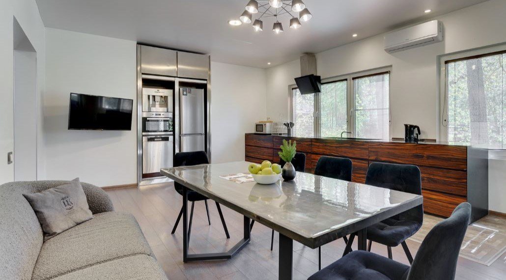 Идеальный выбор для большой компании друзей или группы коллег. В одном доме может комфортно расположиться 10 взрослых гостей. Просторная кухня-гостиная, 5 спален, 2 санузла, гардеробная, терраса с мангаломУслуги и удобства