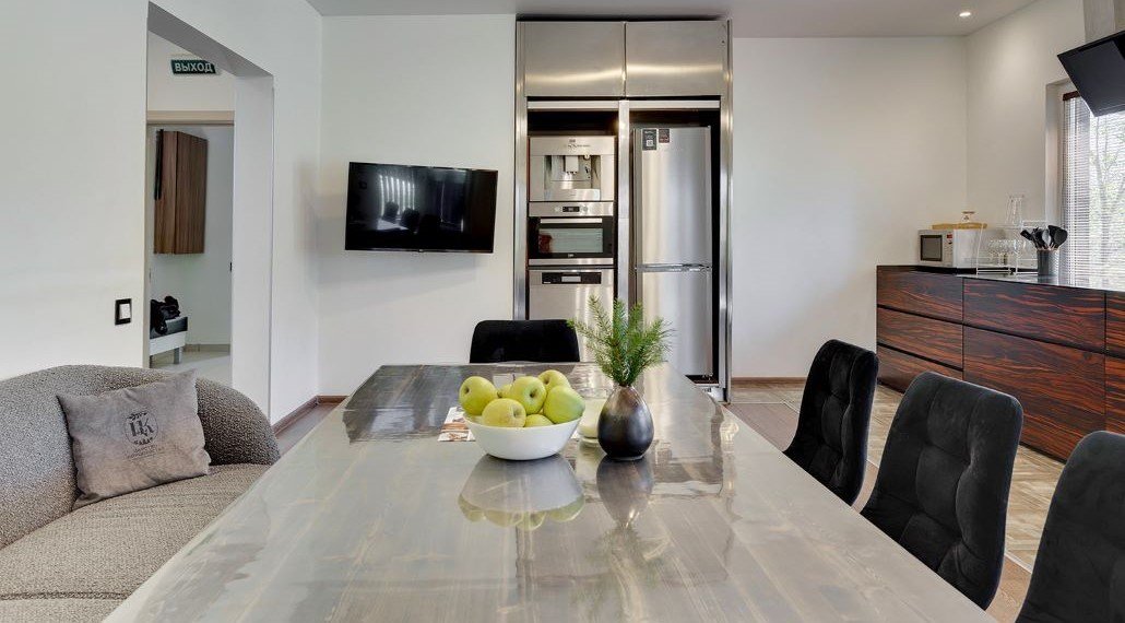 Большой коттедж для максимально комфортного размещения. В доме 4 спальни, три санузла, комната отдыха, просторная кухня-гостиная и терраса с персональным мангаломУслуги и удобства