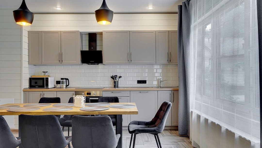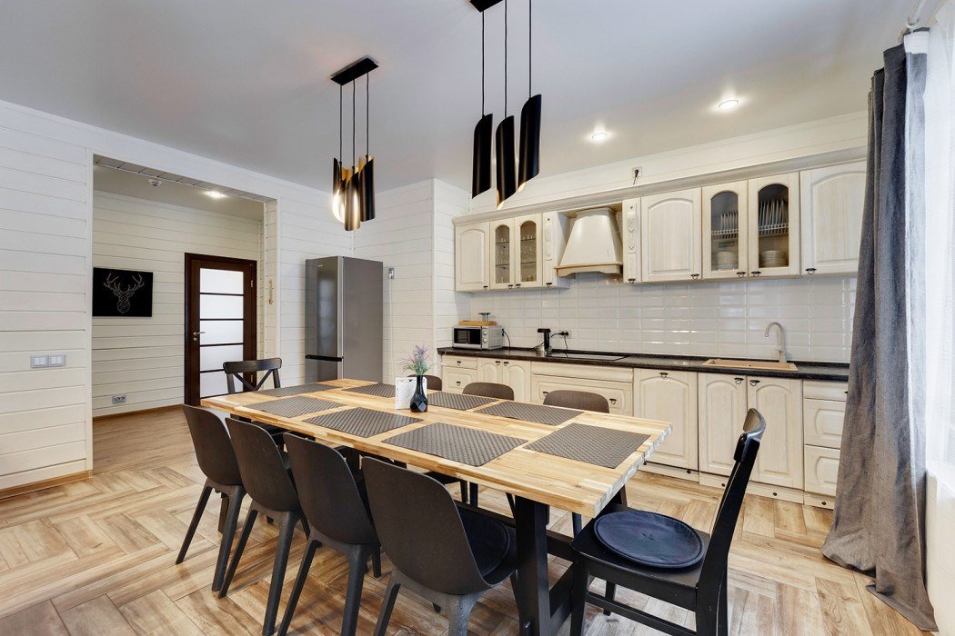 Идеальный выбор для большой компании друзей или группы коллег. В одном доме может комфортно расположиться 10 взрослых гостей. Просторная кухня-гостиная, 5 спален, 2 санузла, гардеробная, терраса с мангалом на приватной территорииУслуги и удобства