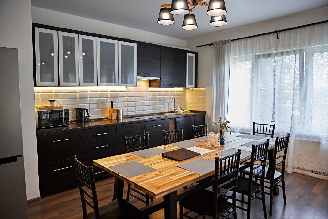 Идеальный выбор для большой компании друзей или группы коллег. В одном доме может комфортно расположиться 10 взрослых гостей. Просторная кухня-гостиная, оборудованная всем необходимым для приготовления пищи, минимум два санузла и душа, 5 спален, гардеробная, терраса с мангалом.Услуги и удобства