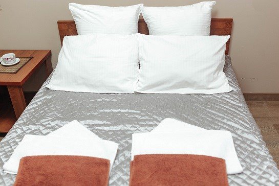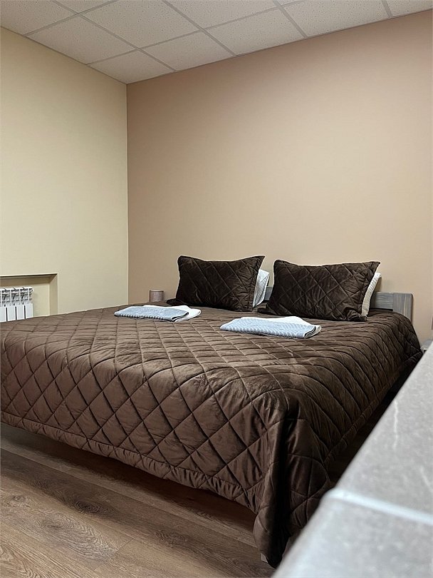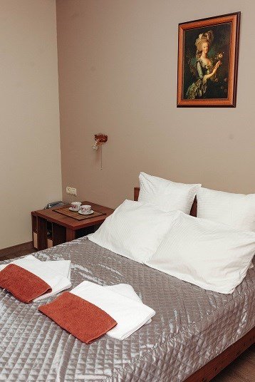 спутниковое телевидение, фен, ванная комната, банные полотенца, двуспальная кровать, унитаз, кулер на этаже, туалетные средства, мини-холодильникВ номере