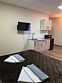 спутниковое телевидение, Wi-Fi, холодильник, кондиционер, фен, плита для приготовления пищи, микроволновая печь, ванна, банные полотенца, тапочки, двуспальная кровать, диван, обеденный стол, зеркало, две комнаты, кухня, набор посуды, чайник, унитаз, раковина, кулер на этаже, тостер, кухонная посуда, столовые приборы, кофейный столик, туалетные средства, диван-кровать, телевизор с плоским экраном, шкаф-купе, вешалки-плечики, затемняющая штораВ номере