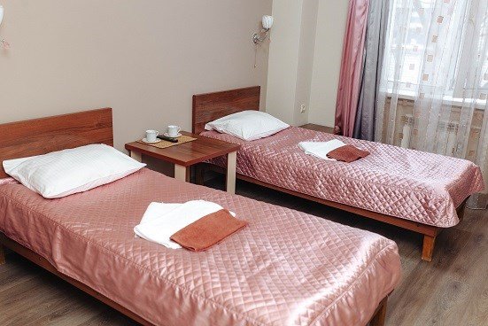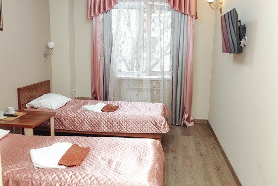 спутниковое телевидение, Wi-Fi, телефон, фен, ванная комната, ванна, банные полотенца, косметические средства, две односпальные кровати, унитаз, раковина, кулер на этаже, туалетные средства, телевизор с плоским экраном, мини-холодильникВ номере