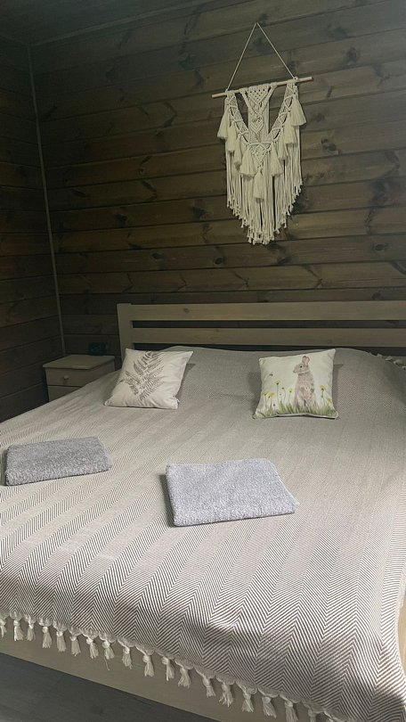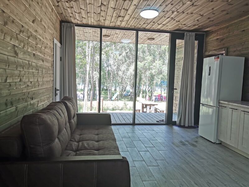 Двухкомнатный домик с душем, холодильником, телевизором, микроволновой печью, чайником и электроплиткой. двуспальная кровать и три односпальных места.