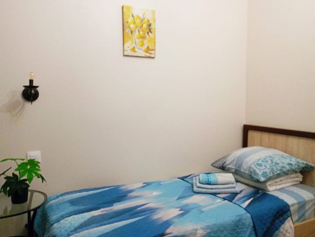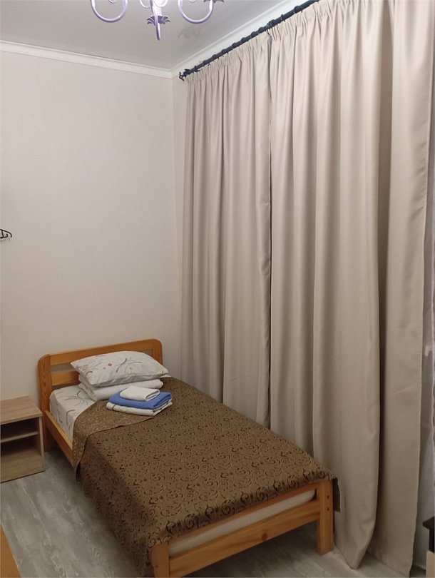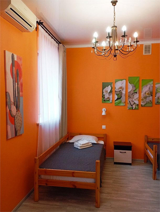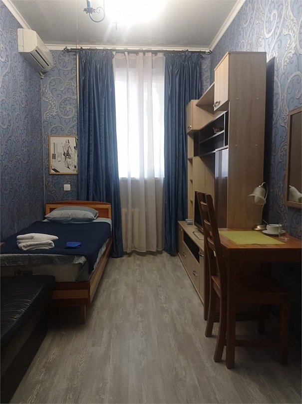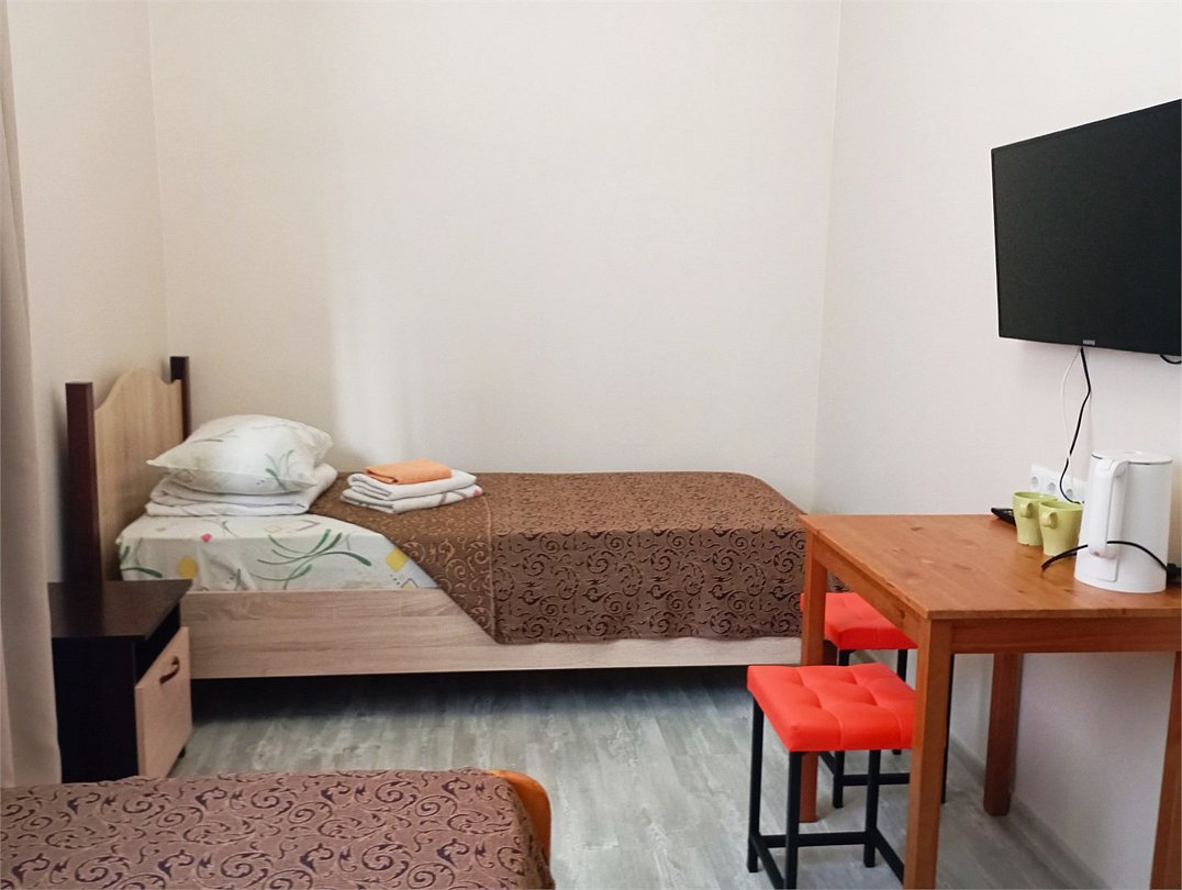 В номере две односпальные кровати , сплит- система, ЖК ТВ, стол и стулья, чайник, гардеробная группа. Свой душ и с/У. В нижнем этаже расположена общая кухня. Комфортная комната для проживания при длительном заселении.Услуги и удобства