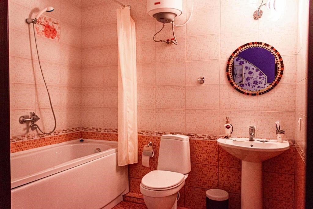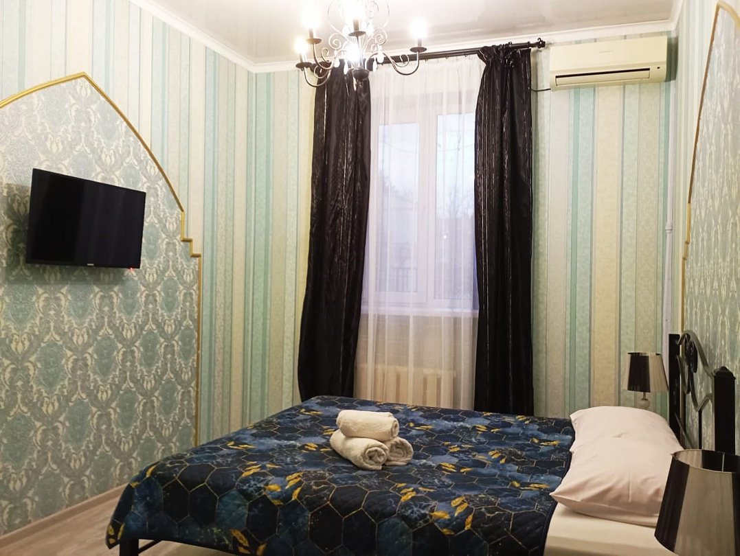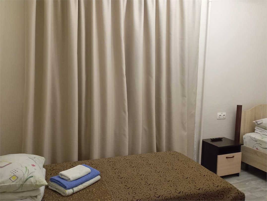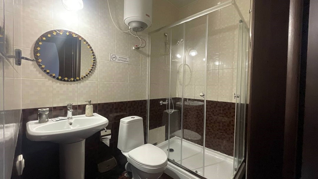 Просторный двухкомнатный номер с душем , с/у и умывальником. Два телевизора ,чайник, два сплита. Межкомнатные двери. Номер на пять гостей. Возможно доп места.Услуги и удобства