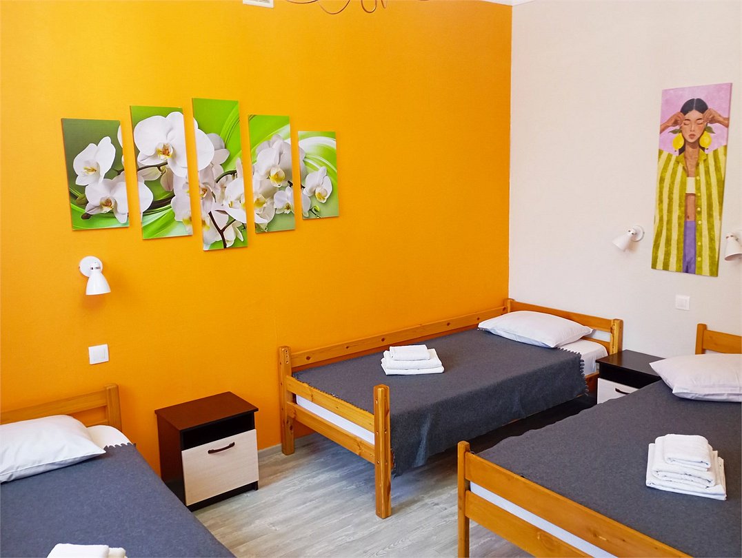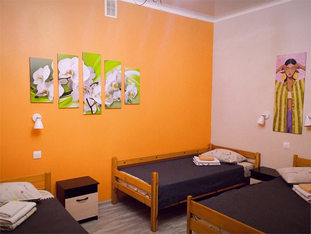 В номере три полутороспальные кровати , сплит- система, ЖК ТВ, обеденный стол и стулья, чайник, гардеробный шкаф. Своя душевая и с/у , умывальник. В нижнем этаже расположена кухня. Комфортная комната для проживания при длительном заселении.Wi-Fi.Услуги и удобства