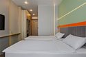 Номер площадью 27 м2 с 1 двуспальной кроватью с анатомическим матрасом рассчитан на 2 взрослых и 2 детей. Для детей до 5 лет включительно проживание в одном номере со взрослыми предоставляется бесплатно на отдельном спальном месте. По запросу может быть предоставлена детская кроватка (для детей от 0 до 3 лет). В номере: Кровать с ортопедическим матрасом, телевизор, мини-бар, кондиционер, телефон. В собственной ванной комнате есть все необходимое для путешественников: набор полотенец, туалетно-косметические принадлежности, фен, тапочки. Для комфортного отдыха в номерах используются светонепроницаемые шторы и улучшенная звукоизоляция. Доступ к высокоскоростному интернету и рабочий уголок позволяют оперативно и комфортно решать рабочие вопросы. Размещение с домашними животными возможно за дополнительную плату только по предварительному согласованию с отелем. Собаки весом до 5 кг, кошки. Не более 1 питомца в номере. Стоимость размещения домашних животных - 1000 руб. в сутки, депозит - 5000 руб.Услуги и удобства