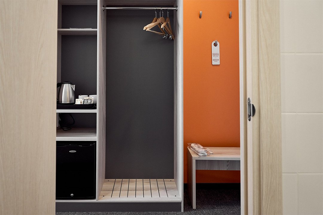 Wi-Fi, телефон, кондиционер, фен, будильник, электронные замки, душевая кабина, санузел, тапочки, косметические средства, две односпальные кровати, шкаф для одежды, письменные принадлежности, ковровое покрытие, стул, телевизор с плоским экраном, мини-холодильник, пуфик, рабочий стол, чайная станция, вешалки-плечики, бутилированная вода, затемняющая штора, зеркало в полный рост, можно с питомцами, миска, пакетик для выгулаВ номере